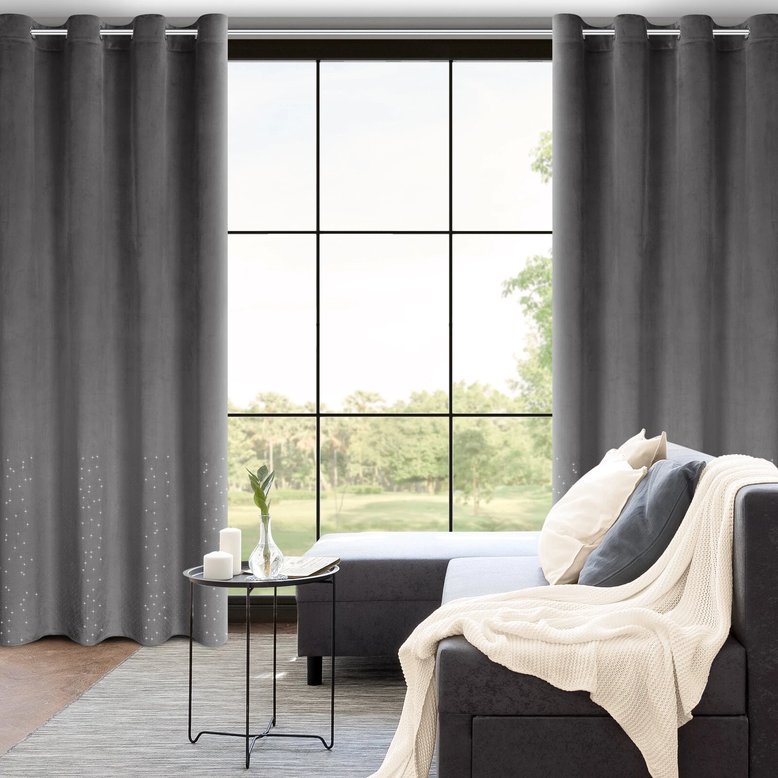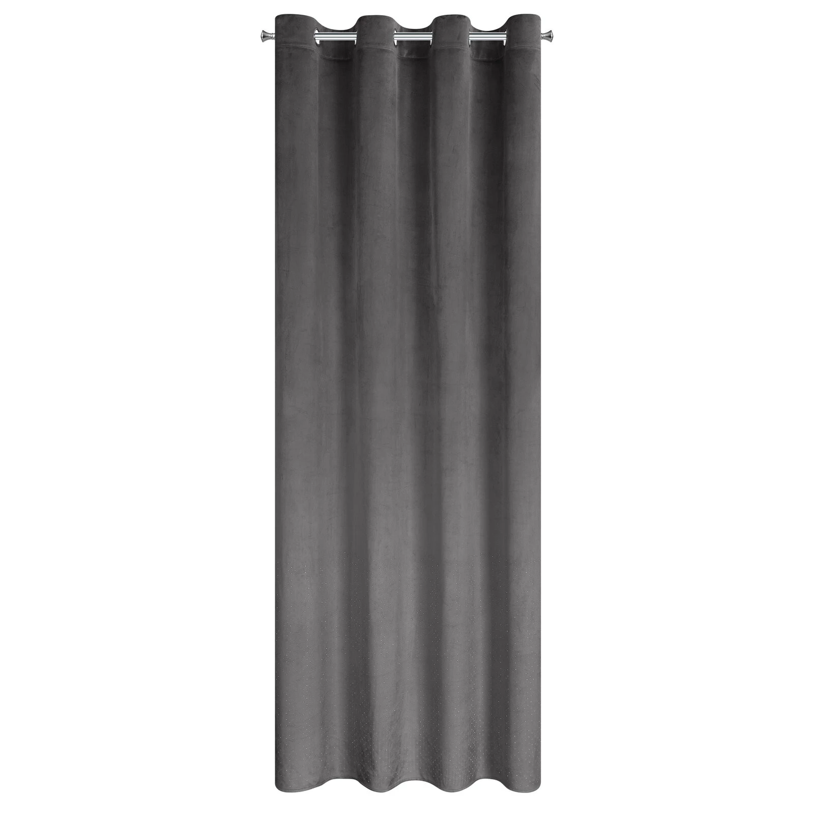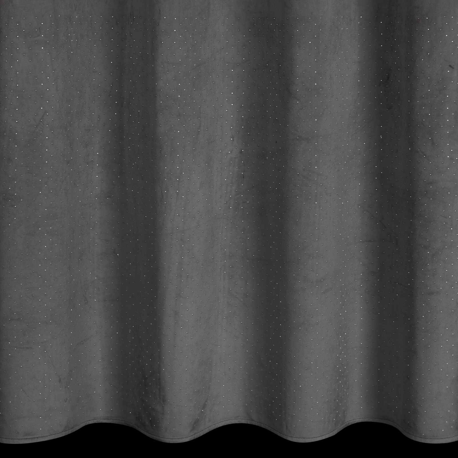 - Zasłona gotowa welwetowa zdobiona diamencikami szerokość: 140 cm, długość: 250 cm, kolor: grafitowy, Gramatura: 200 GSM, Skład: 100% poliester