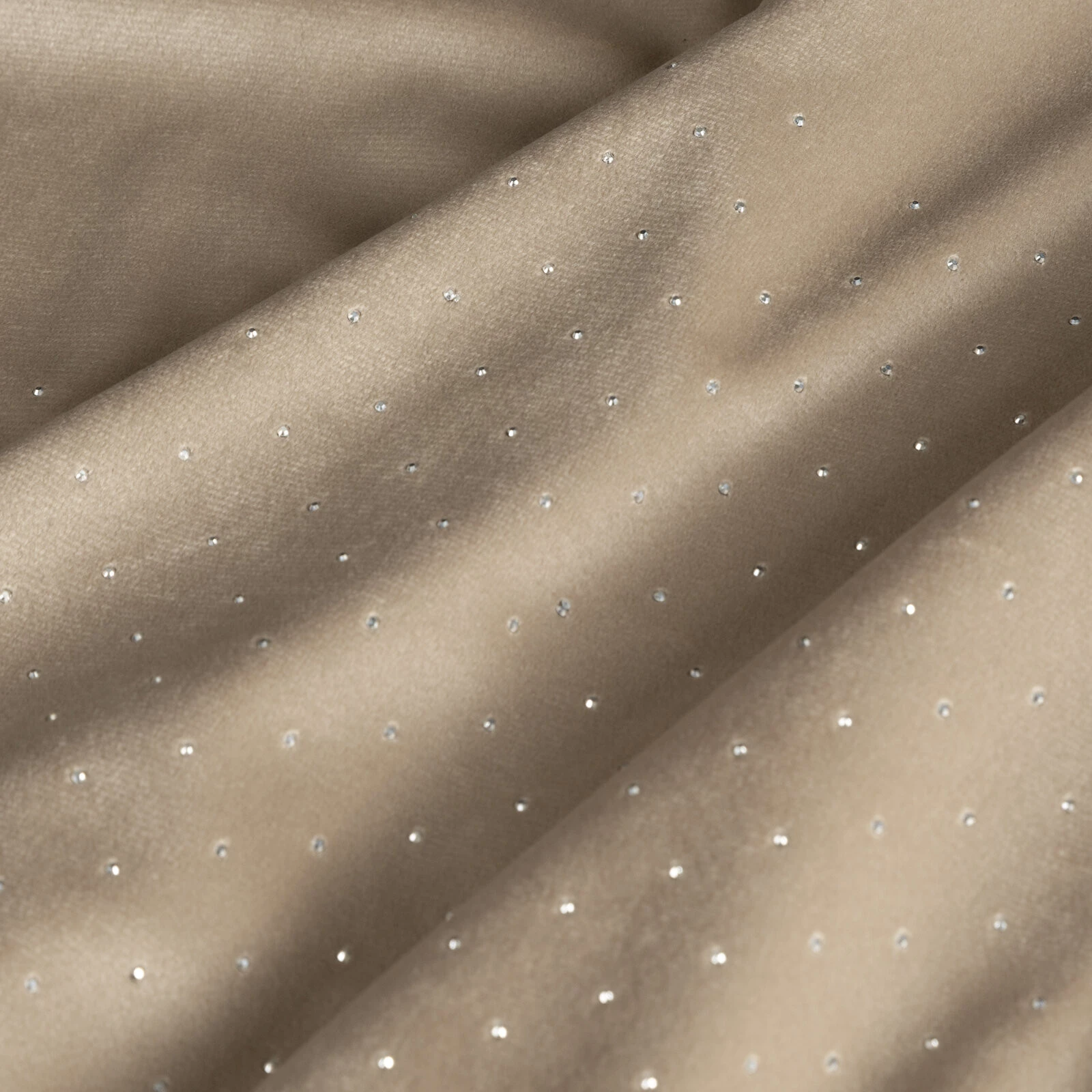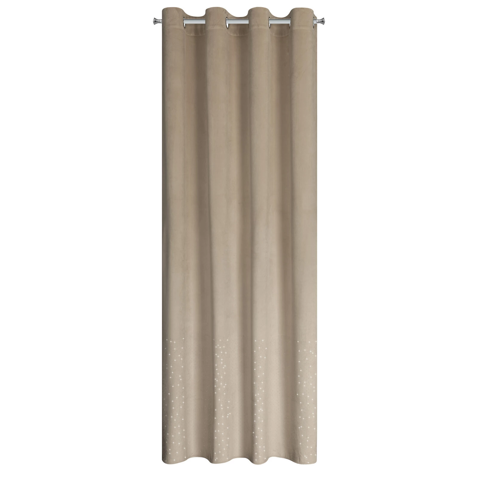 - Zasłona gotowa welwetowa zdobiona diamencikami szerokość: 140 cm, długość: 250 cm, kolor: beżowy, Gramatura: 200 GSM, Skład: 100% poliester