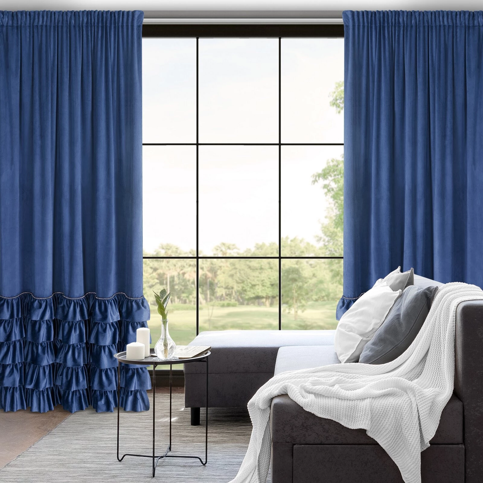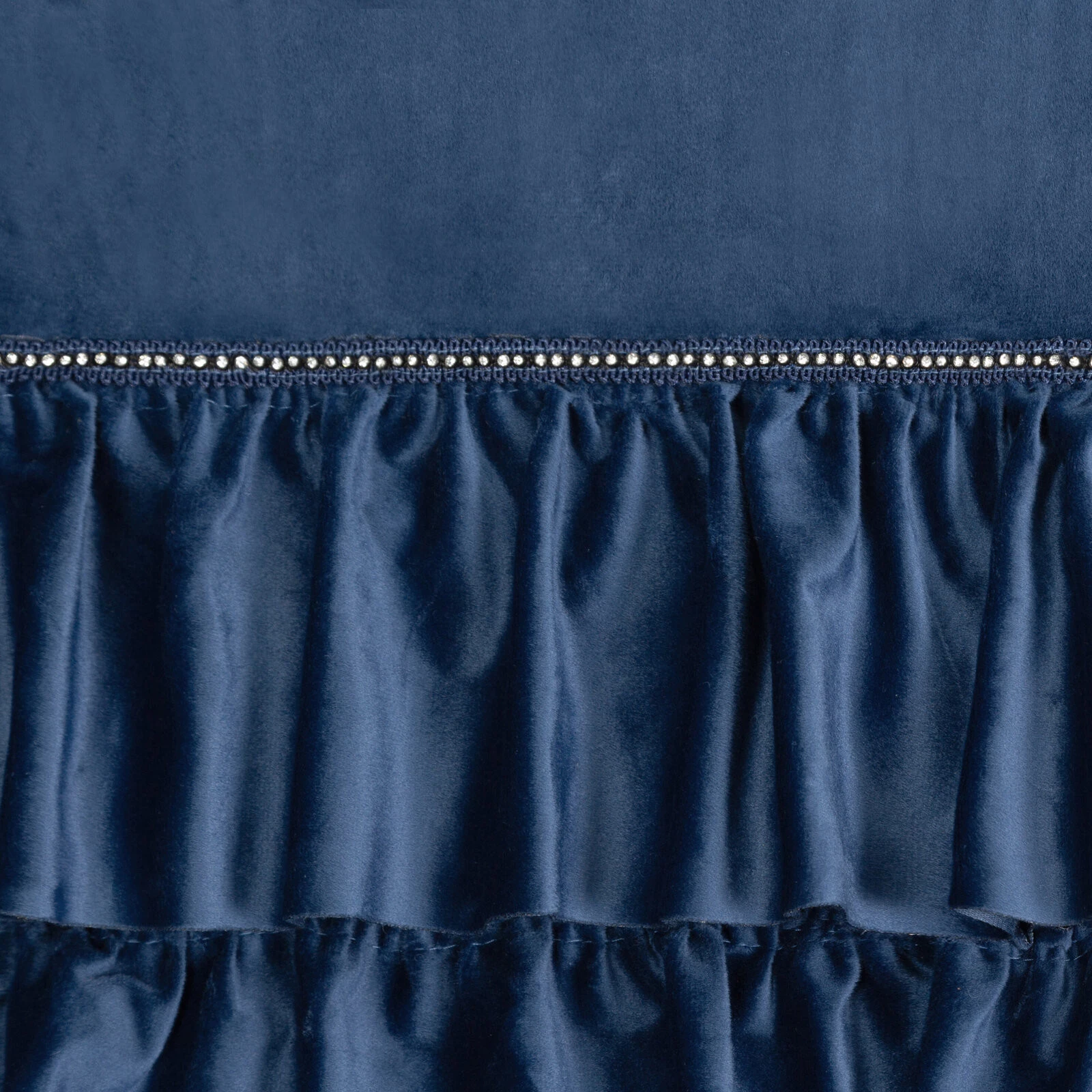 - Zasłona gotowa welwetowa z falbanami i ozdobnymi cyrkoniami szerokość: 140 cm, długość: 250 cm, kolor: granatowy, Gramatura: 200 GSM, Skład: 100% poliester