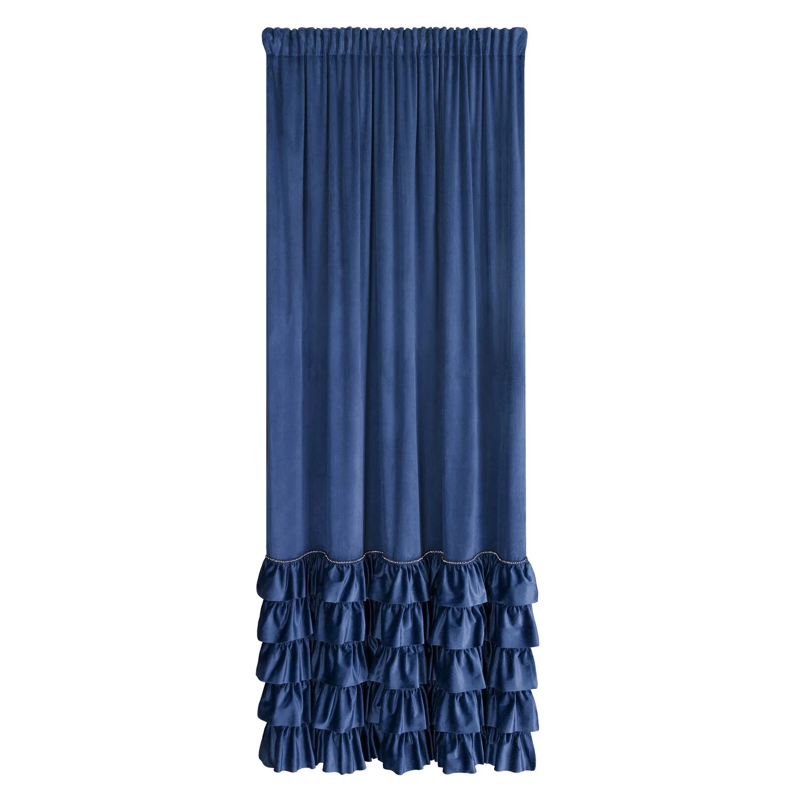 Zasłona gotowa welwetowa z falbanami i ozdobnymi cyrkoniami szerokość: 140 cm, długość: 250 cm, kolor: granatowy, Gramatura: 200 GSM, Skład: 100% poliester