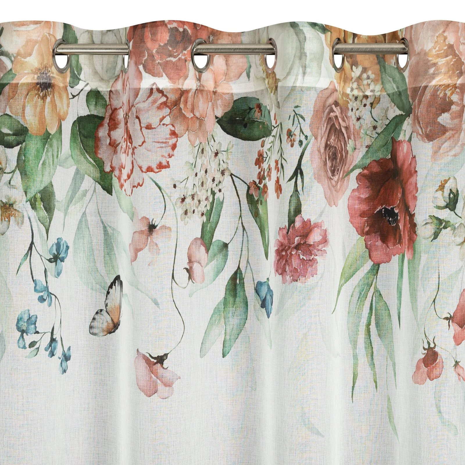 Zasłona gotowa z kwiatowym nadrukiem szerokość: 140 cm, długość: 250 cm, kolor: biały, Gramatura: 75 GSM, Skład: 100% poliester