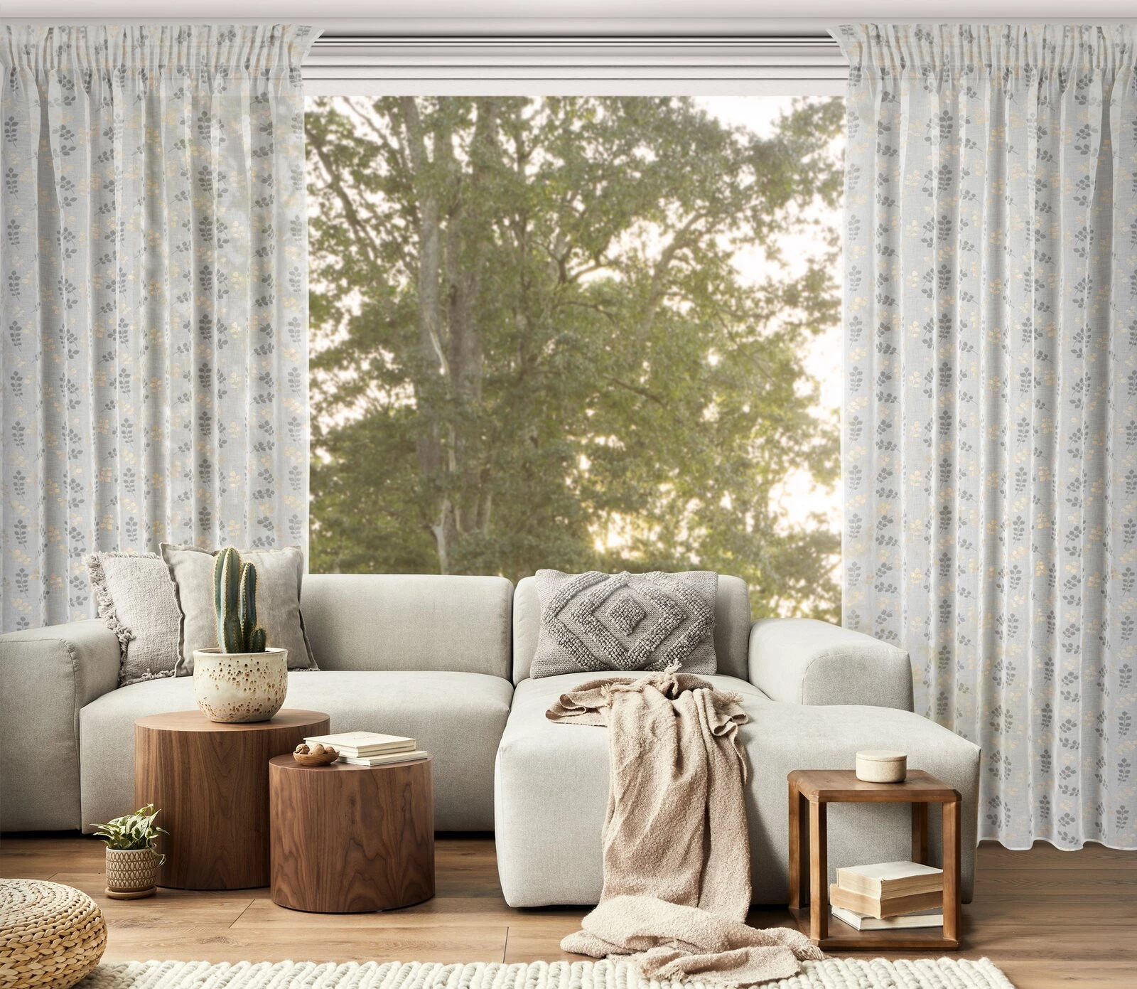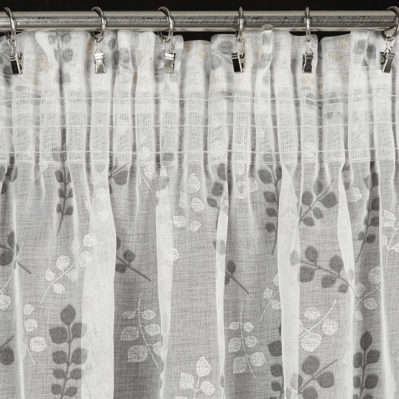 - Zasłona z motywem botanicznym z błyszczącym nadrukiem szerokość: 140 cm, długość: 270 cm, kolor: biały, Gramatura: 70 GSM, Skład: 100% poliester