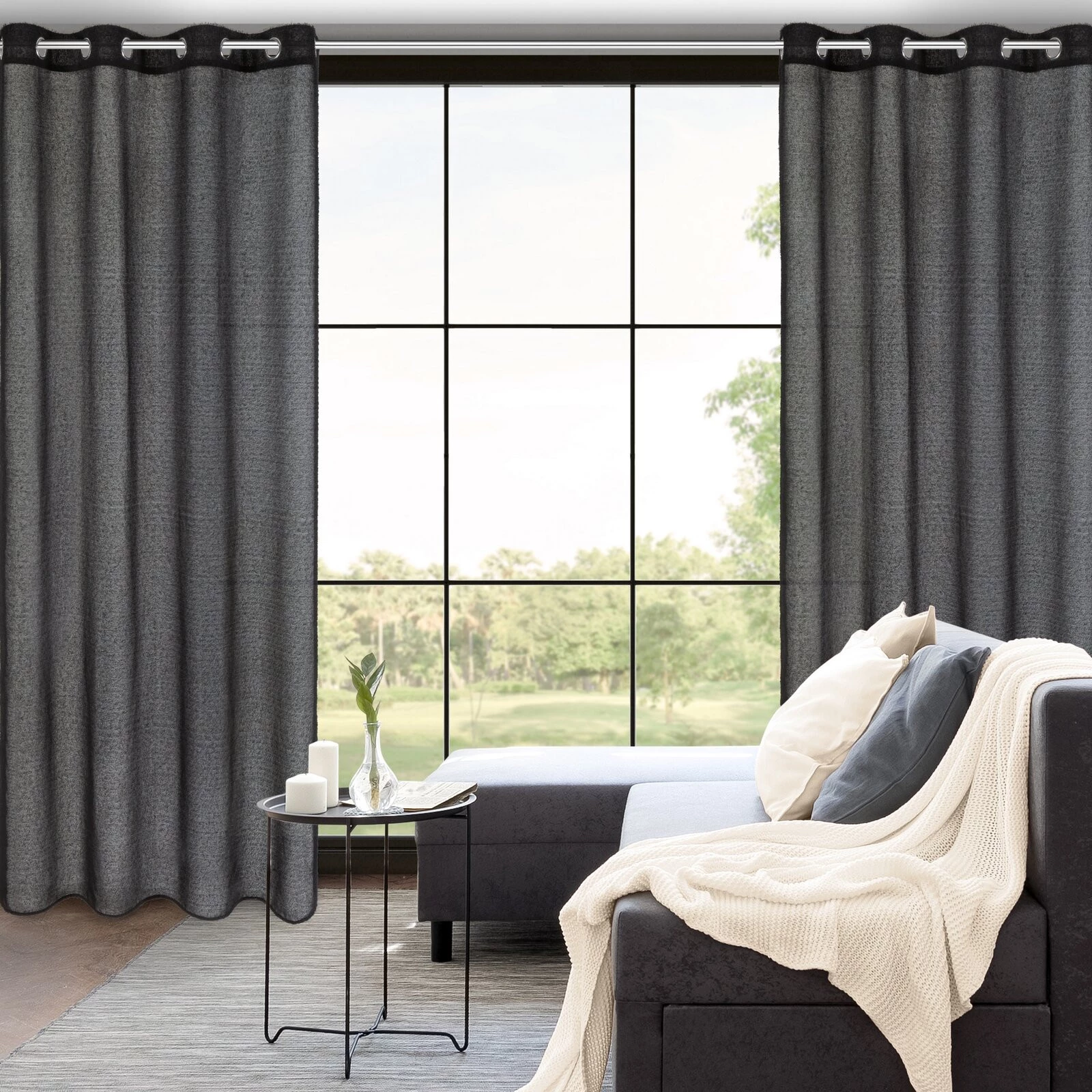 - Zasłona gotowa z tkaniny moherowej szerokość: 140 cm, długość: 250 cm, kolor: czarny, Gramatura: 110 GSM, Skład: 100% poliester