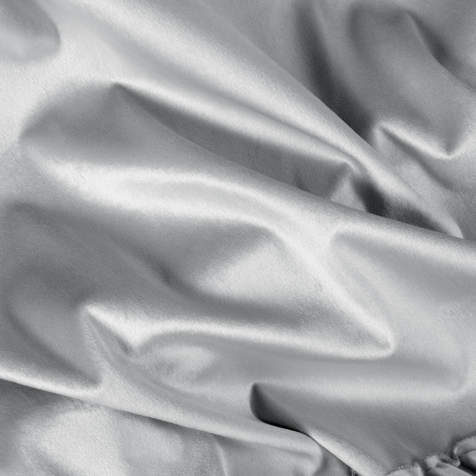 - Zasłona gotowa welwetowa z falbanami od dołu szerokość: 140 cm, długość: 250 cm, kolor: srebrny, Gramatura: 200 GSM, Skład: 100% poliester
