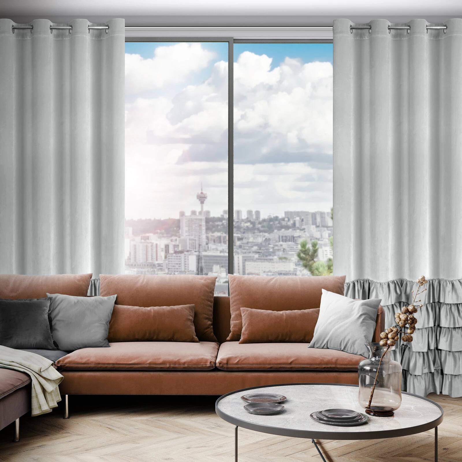 Zasłona gotowa welwetowa z falbanami od dołu szerokość: 140 cm, długość: 250 cm, kolor: srebrny, Gramatura: 200 GSM, Skład: 100% poliester