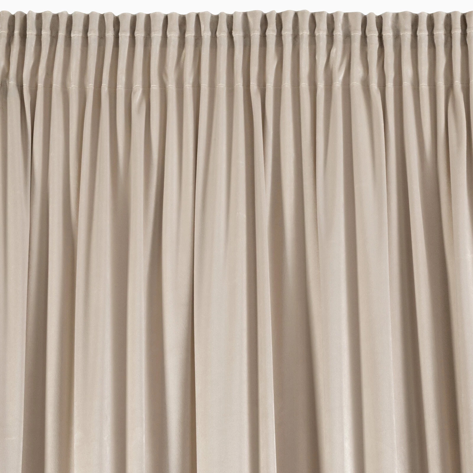 Zasłona gotowa welwetowa z falbanami od dołu szerokość: 140 cm, długość: 250 cm, kolor: beżowy, Gramatura: 200 GSM, Skład: 100% poliester