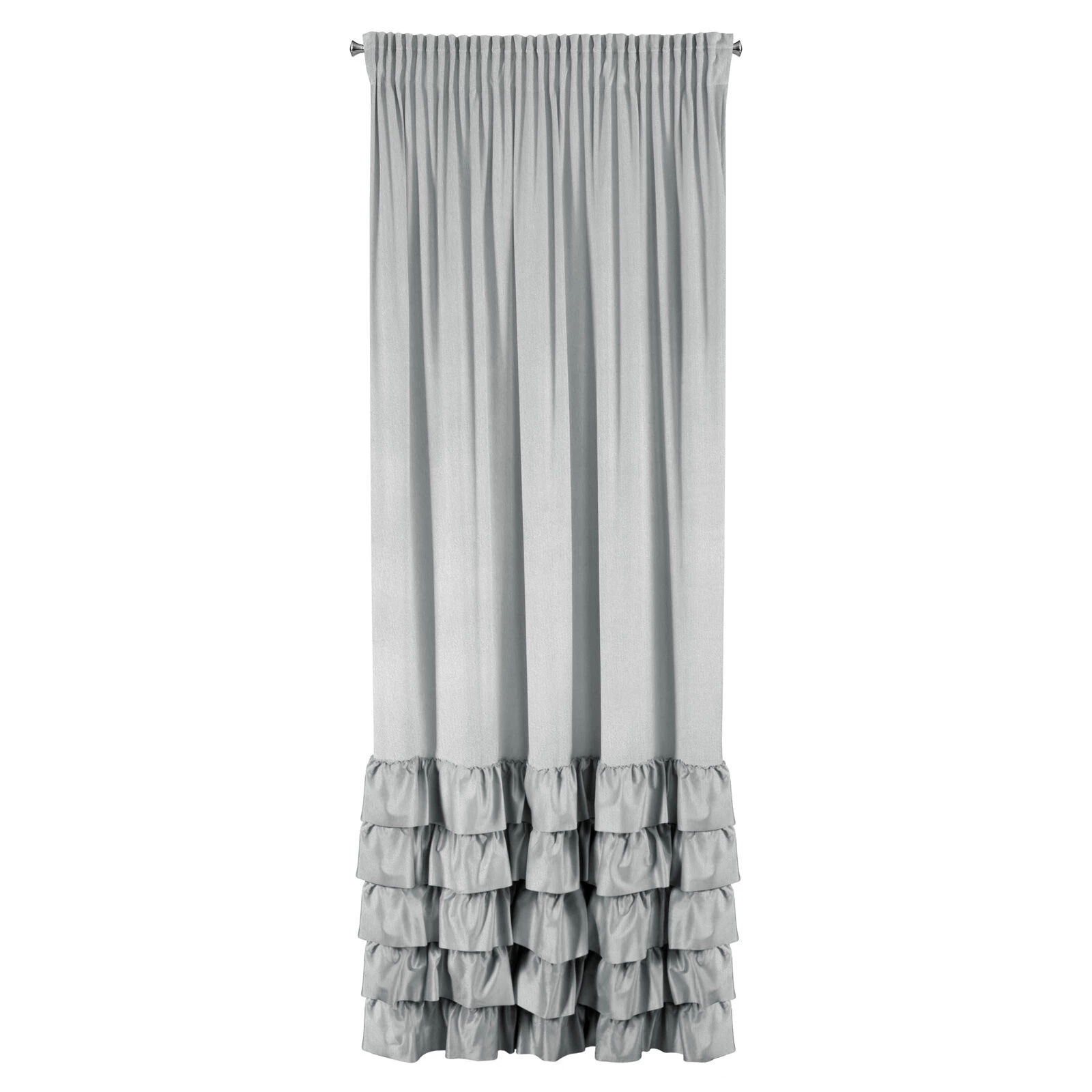 Zasłona gotowa welwetowa z falbanami od dołu szerokość: 140 cm, długość: 250 cm, kolor: srebrny, Gramatura: 200 GSM, Skład: 100% poliester