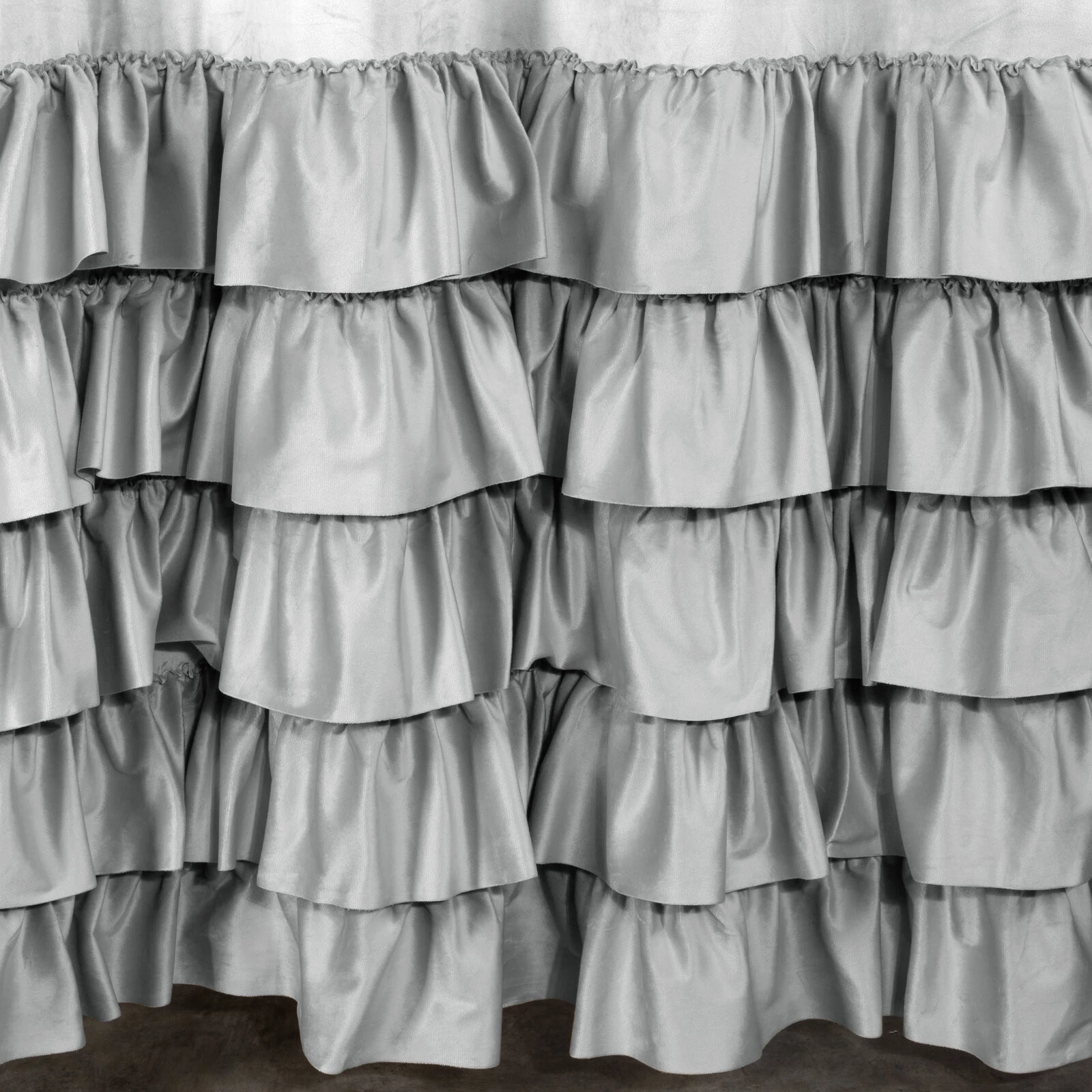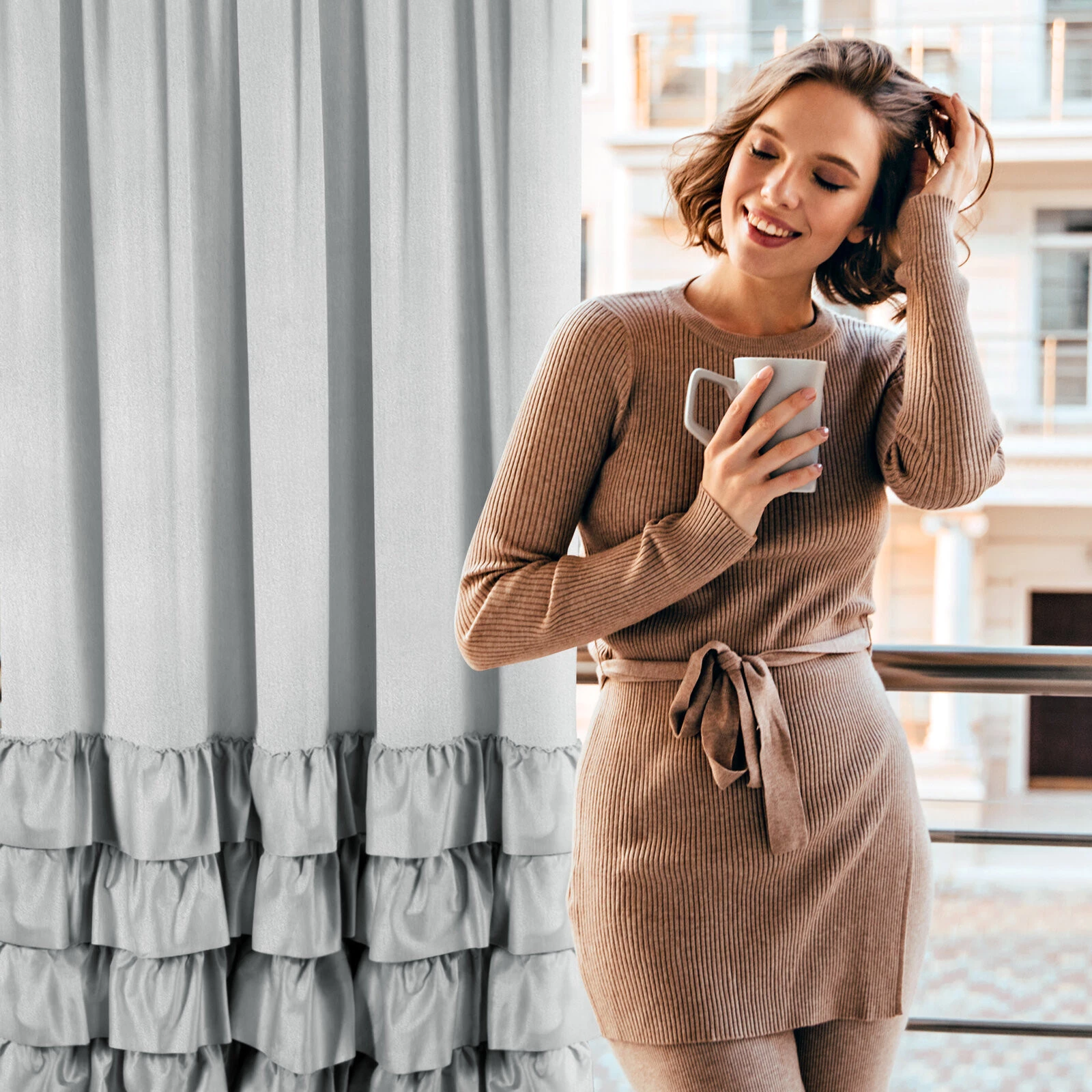 - Zasłona gotowa welwetowa z falbanami od dołu szerokość: 140 cm, długość: 270 cm, kolor: srebrny, Gramatura: 200 GSM, Skład: 100% poliester
