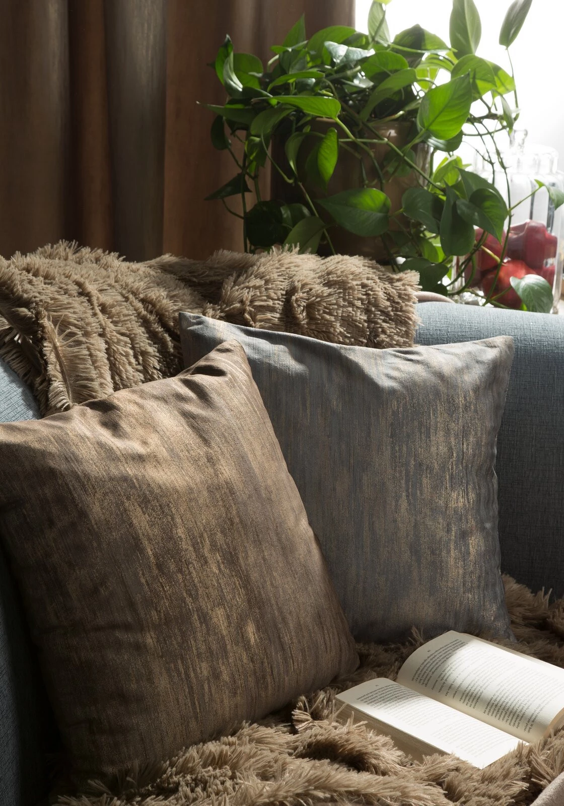 Poszewka welwetowa z błyszczącym nadrukiem szerokość: 45 cm, długość: 45 cm, kolor: ciemnobeżowy, Gramatura: 200 GSM, Skład: 100% poliester