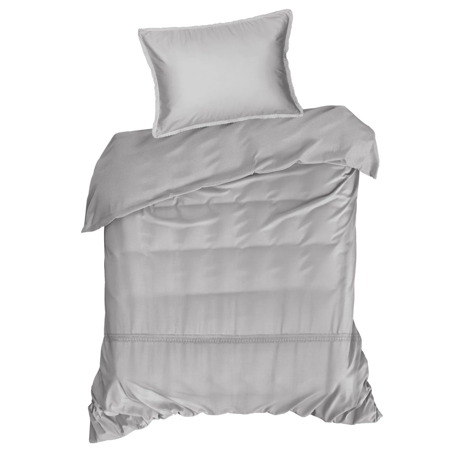 Komplet pościeli z satyny bawełnianej z koronką, pakowana w pudełku szerokość: 220 cm, długość: 200 cm, kolor: jasnoszary, Gramatura: 115 GSM, Skład: satyna, 100% bawełna