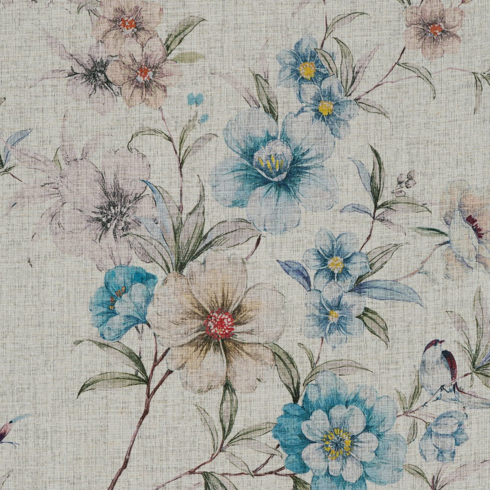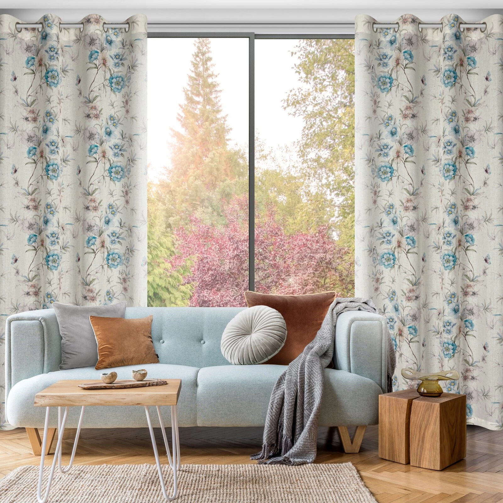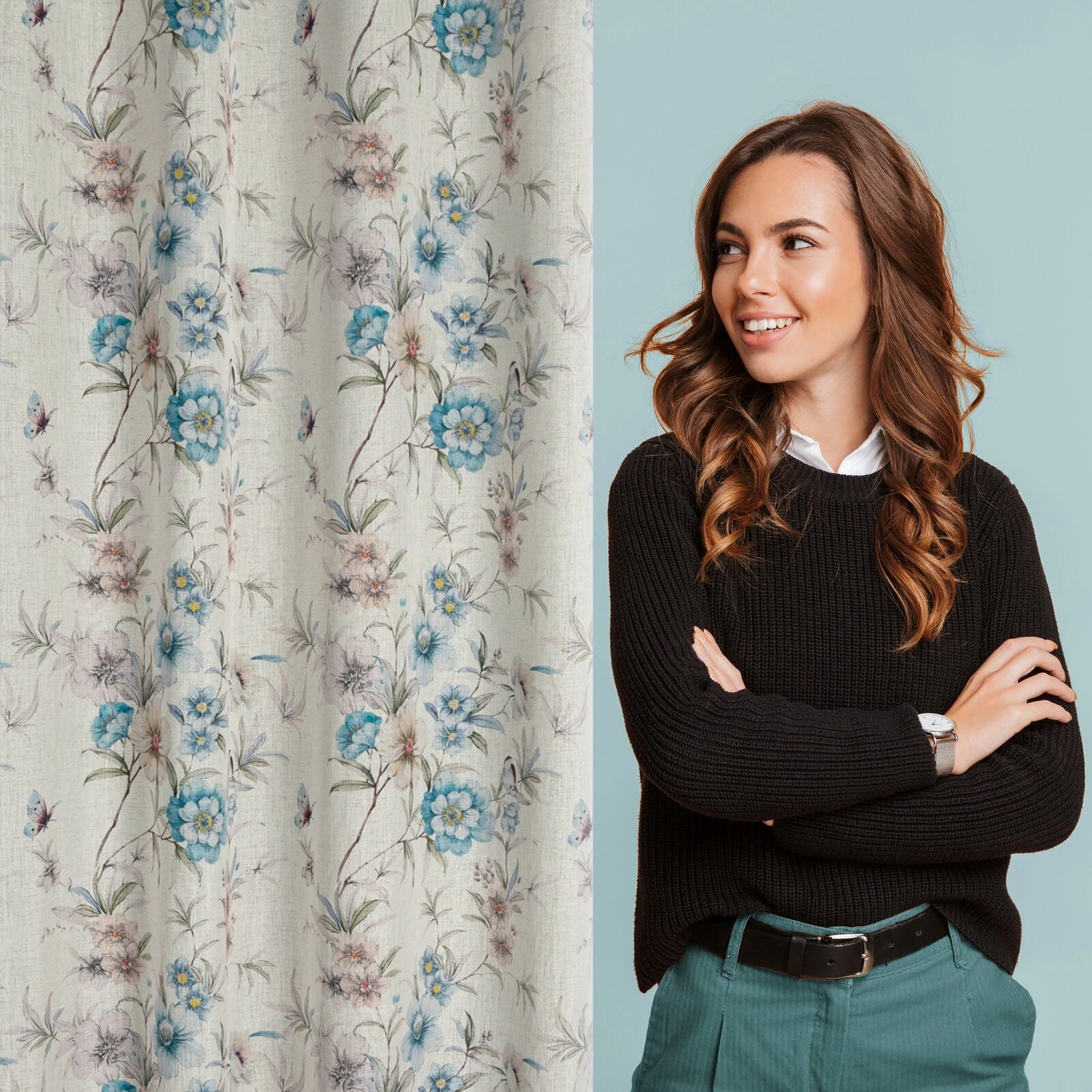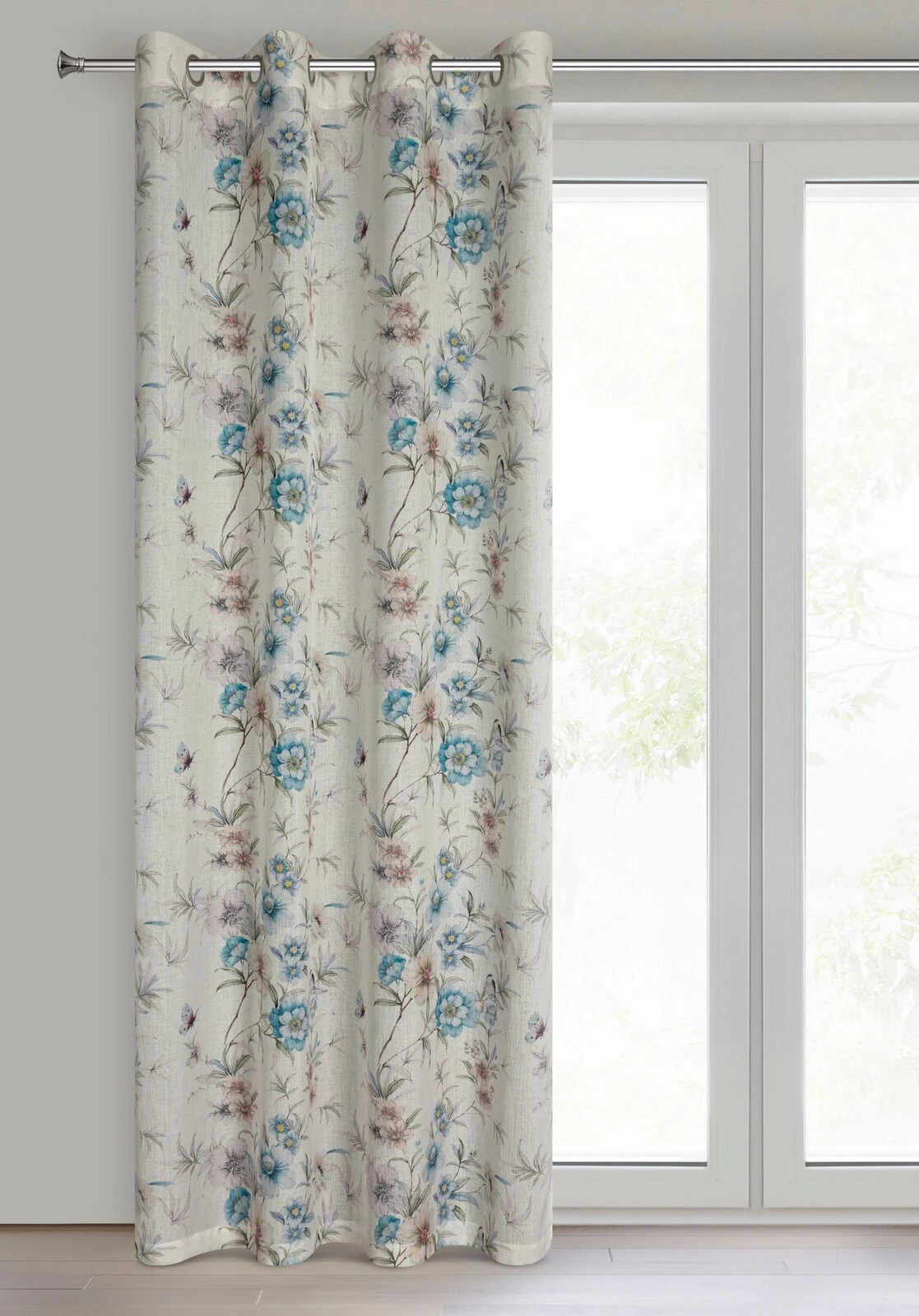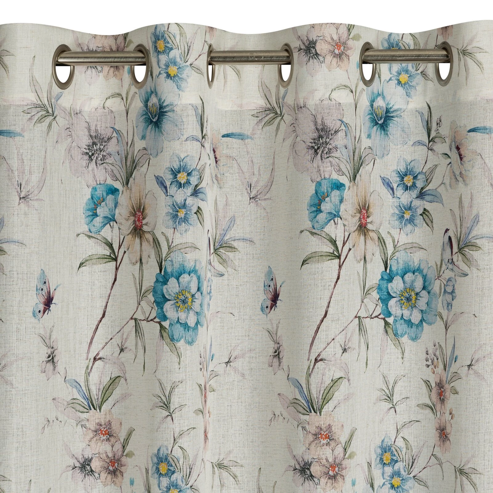 - Zasłona gotowa w stylu eko z kwiatowym nadrukiem szerokość: 140 cm, długość: 250 cm, kolor: naturalny, Gramatura: 130 GSM, Skład: 100% poliester