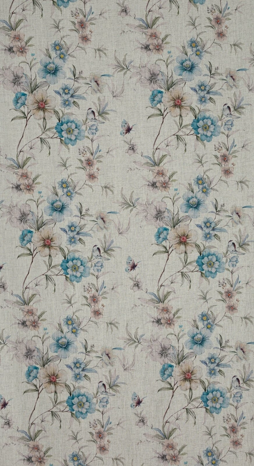 Zasłona gotowa w stylu eko z kwiatowym nadrukiem szerokość: 140 cm, długość: 250 cm, kolor: naturalny, Gramatura: 130 GSM, Skład: 100% poliester