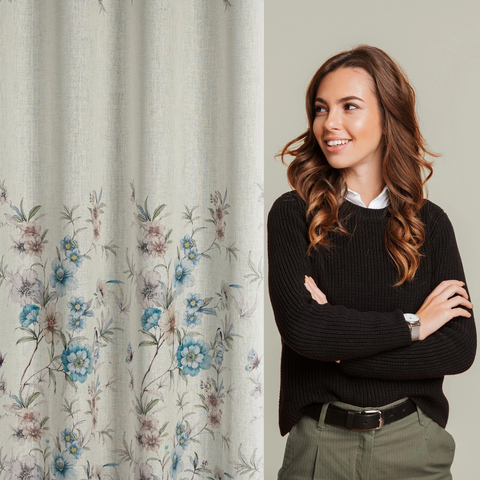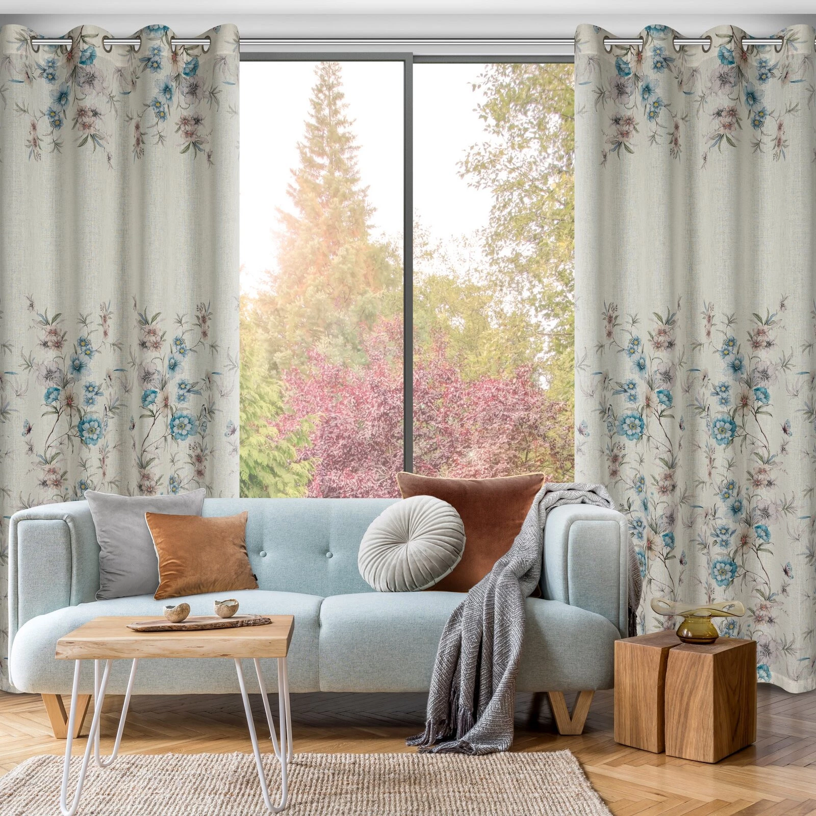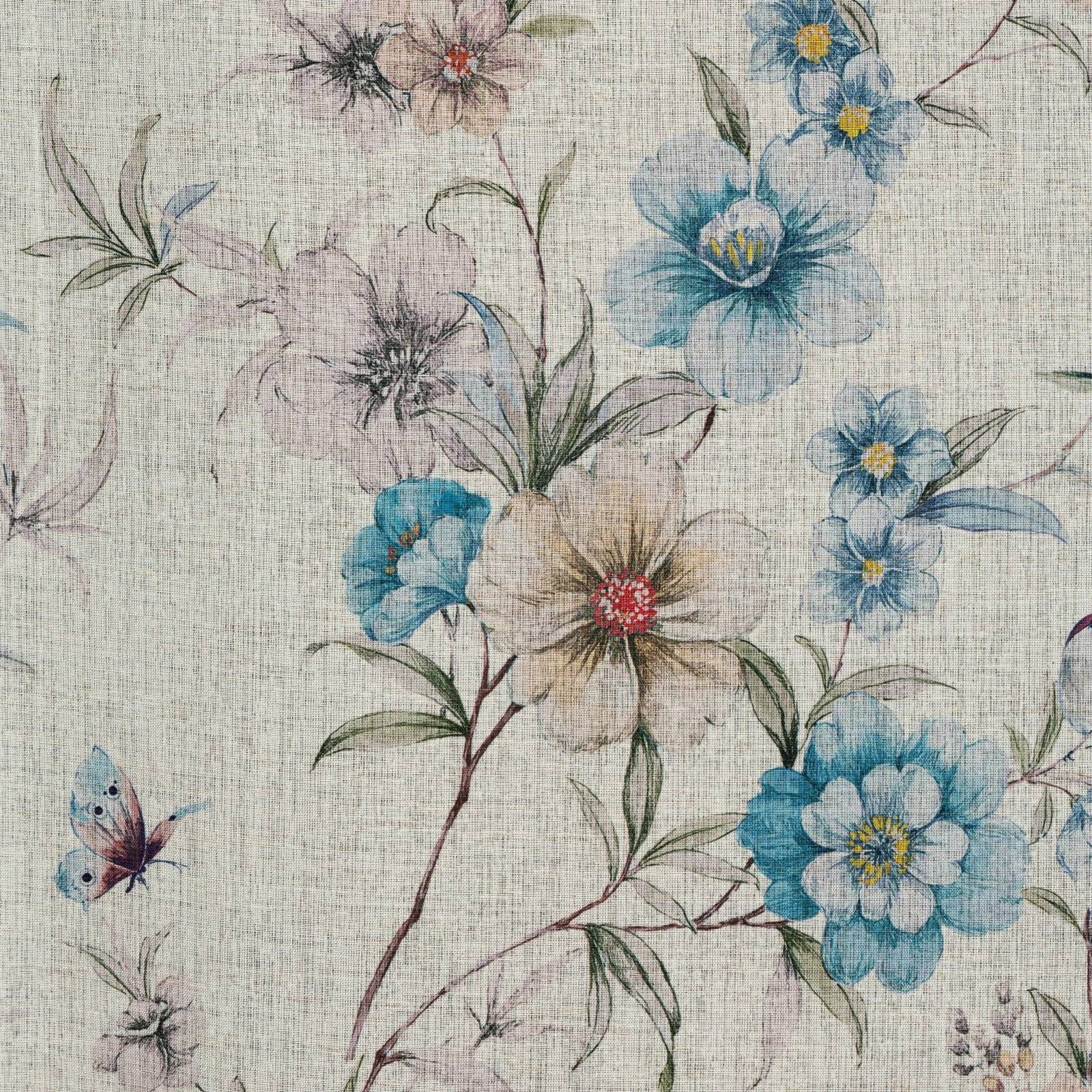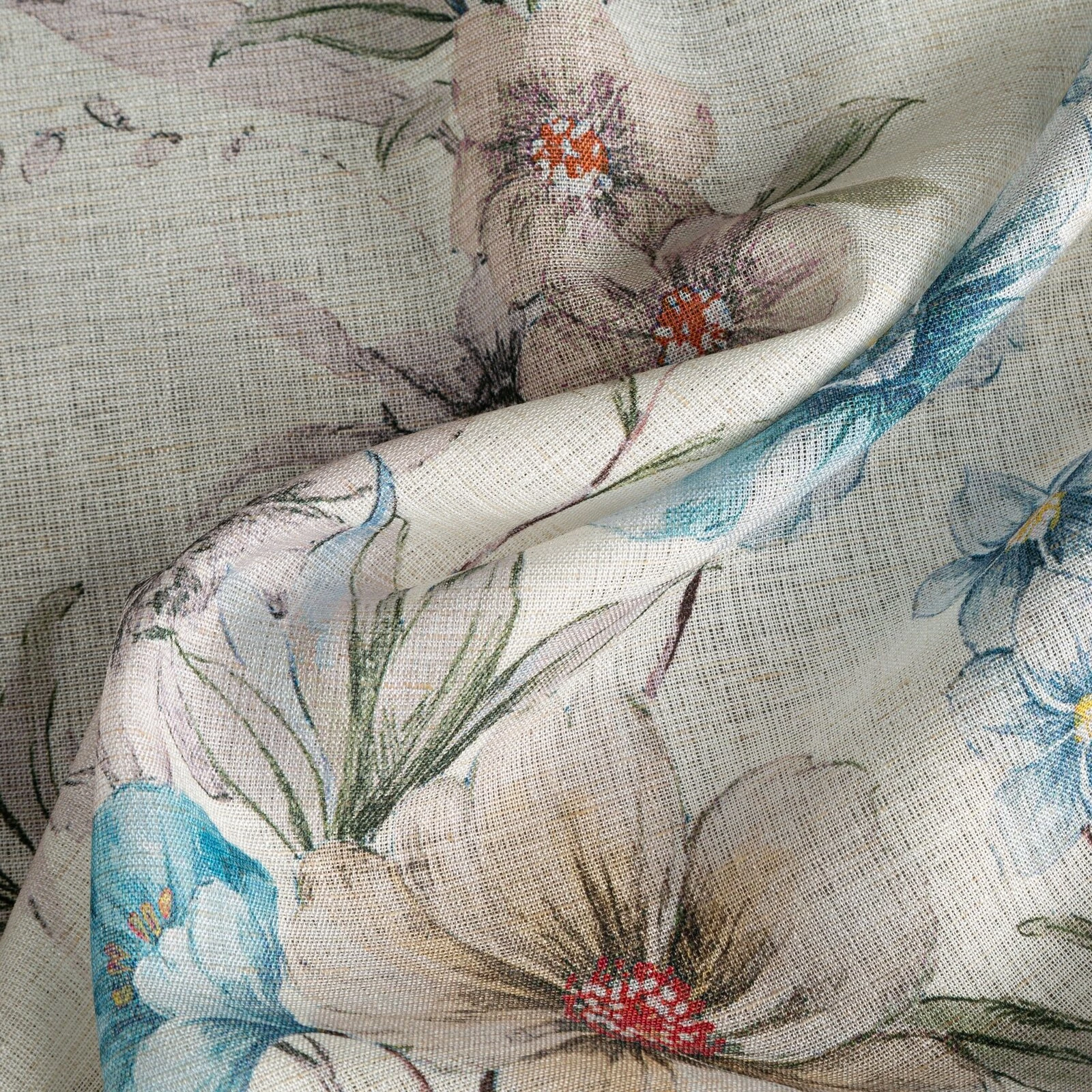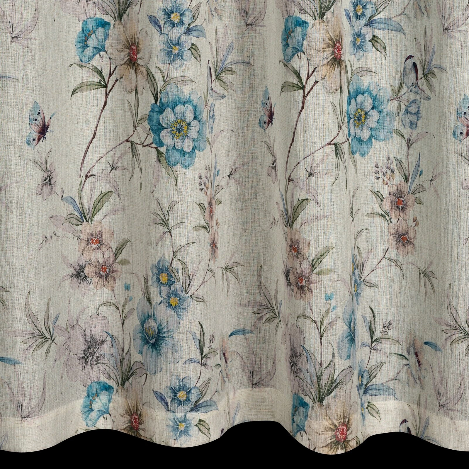 - Zasłona gotowa w stylu eko z kwiatowym nadrukiem szerokość: 140 cm, długość: 250 cm, kolor: naturalny, Gramatura: 130 GSM, Skład: 100% poliester