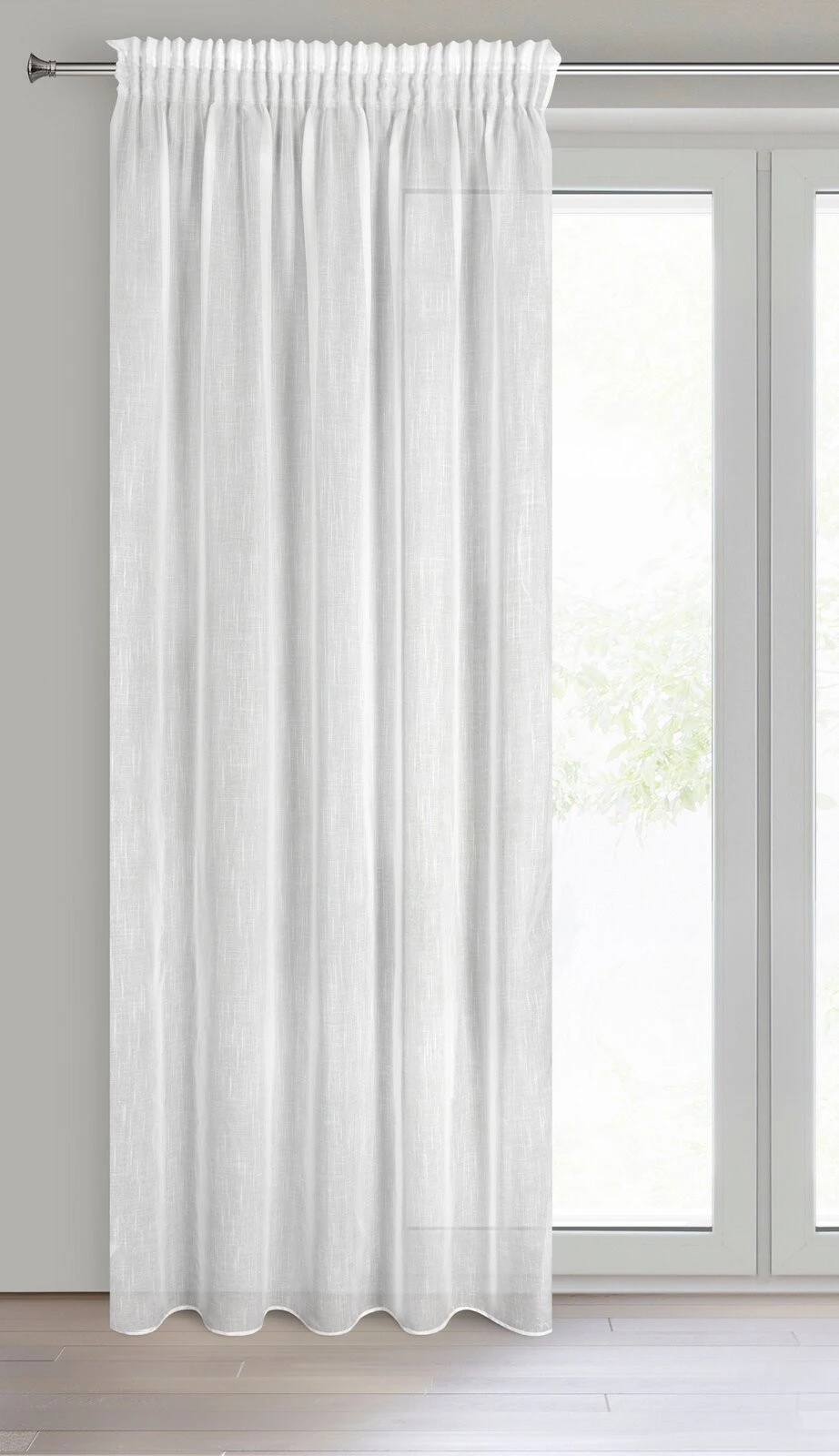 Firana gotowa o strukturze deszczyku szerokość: 140 cm, długość: 270 cm, kolor: biały, Gramatura: 70 GSM, Skład: 100% poliester