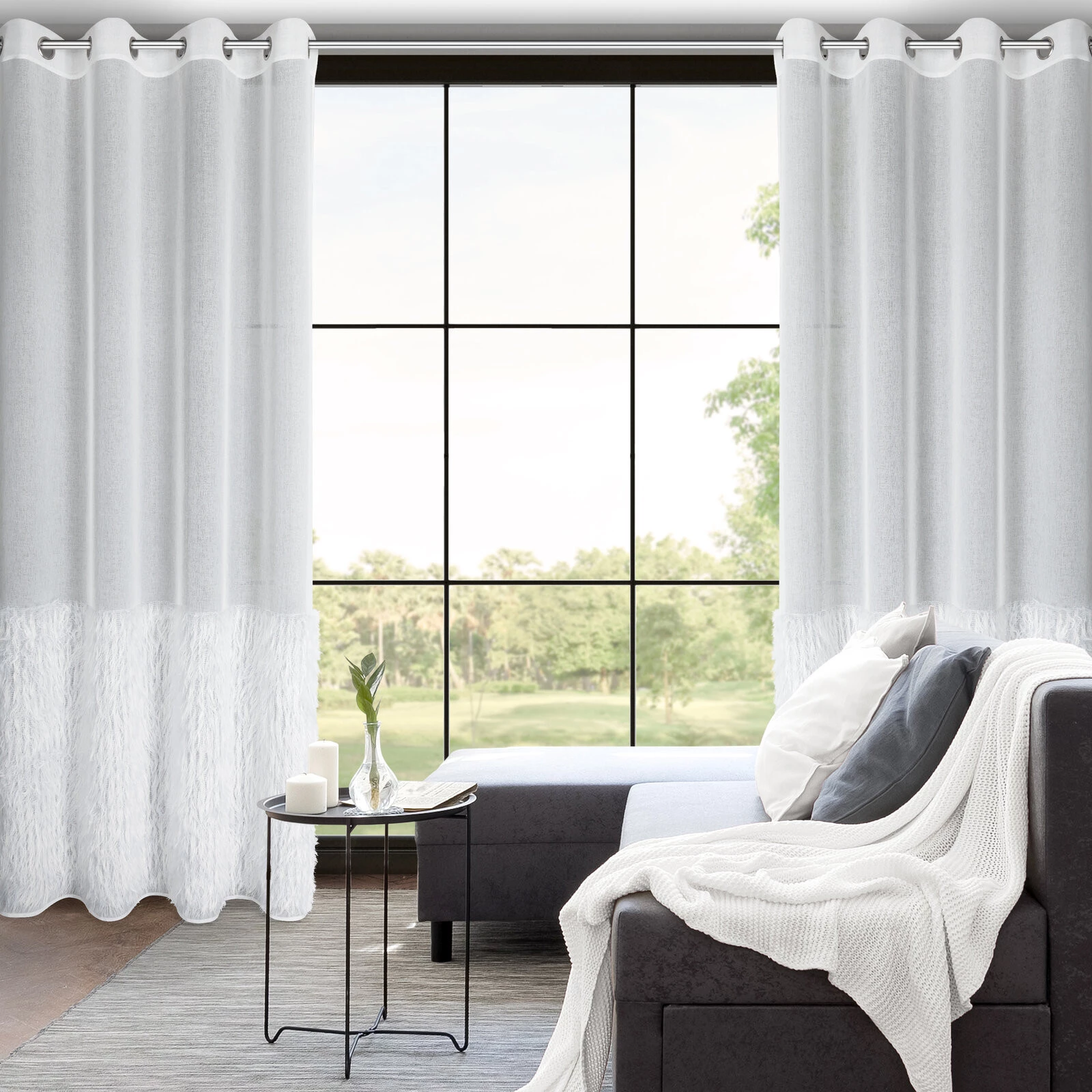 - Firana gotowa z aplikacją szerokość: 140 cm, długość: 250 cm, kolor: biały, Gramatura: 70 GSM, Skład: 100% poliester