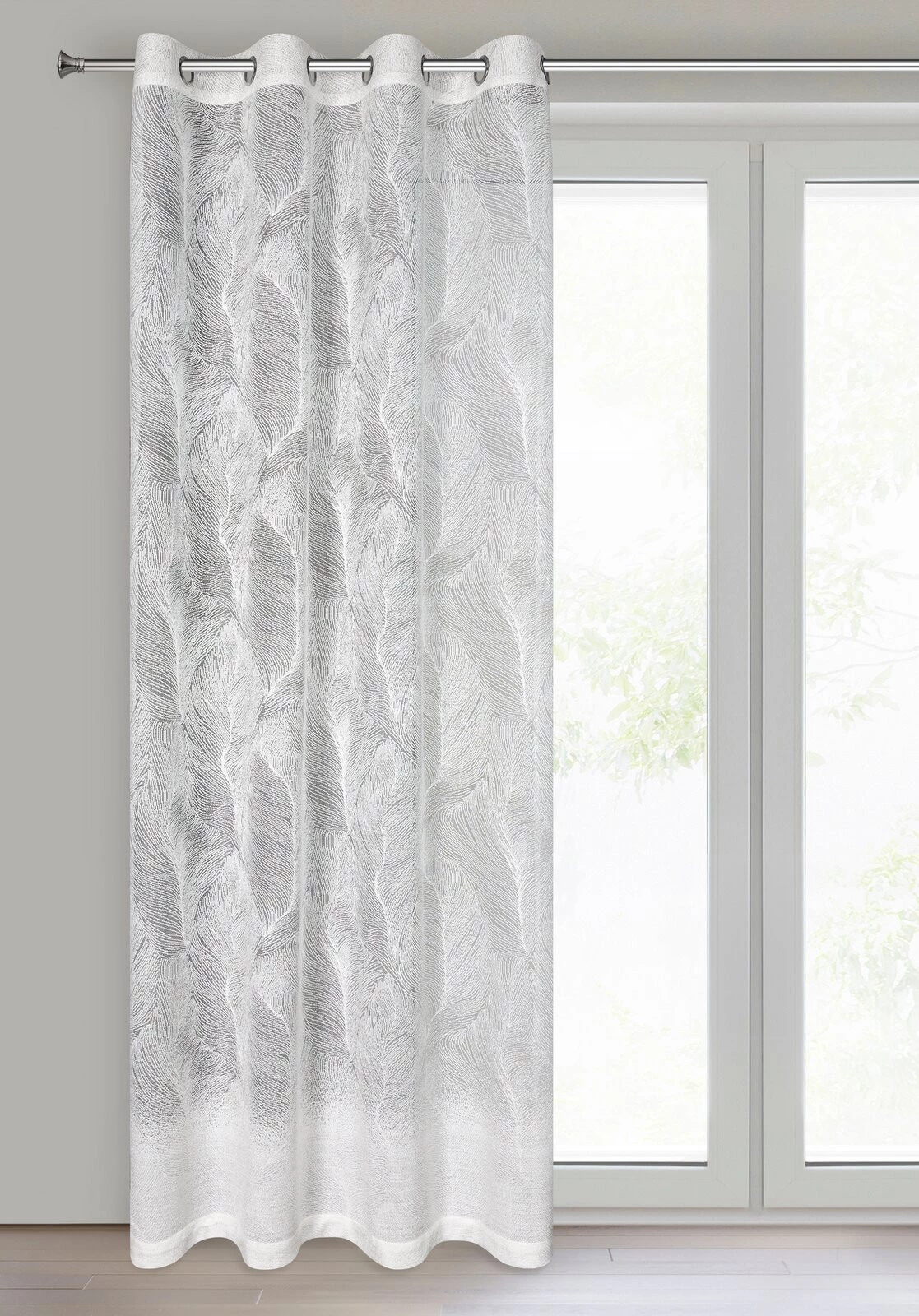 Zasłona gotowa żakardowa z motywem botanicznym szerokość: 140 cm, długość: 250 cm, kolor: biały, Gramatura: 170 GSM, Skład: 100% poliester