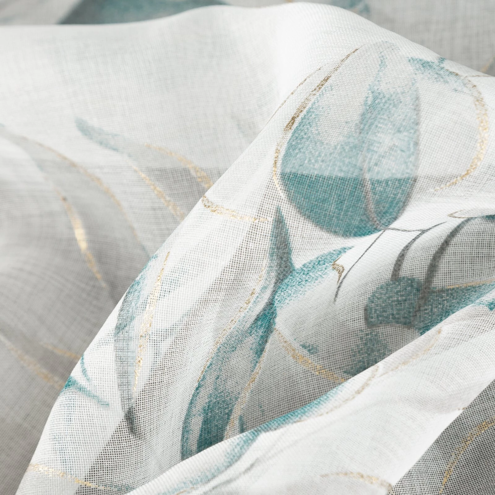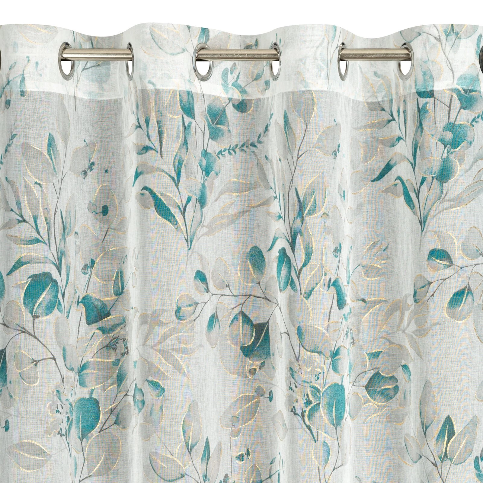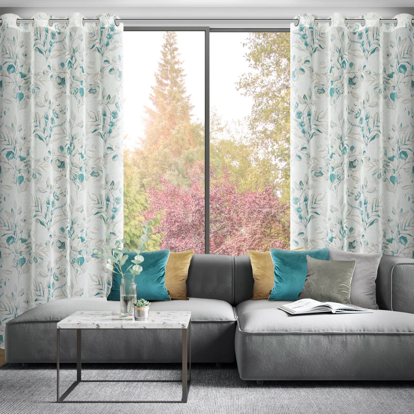Zasłona z motywem botanicznym z błyszczącym nadrukiem szerokość: 140 cm, długość: 250 cm, kolor: biały, Gramatura: 70 GSM, Skład: 100% poliester