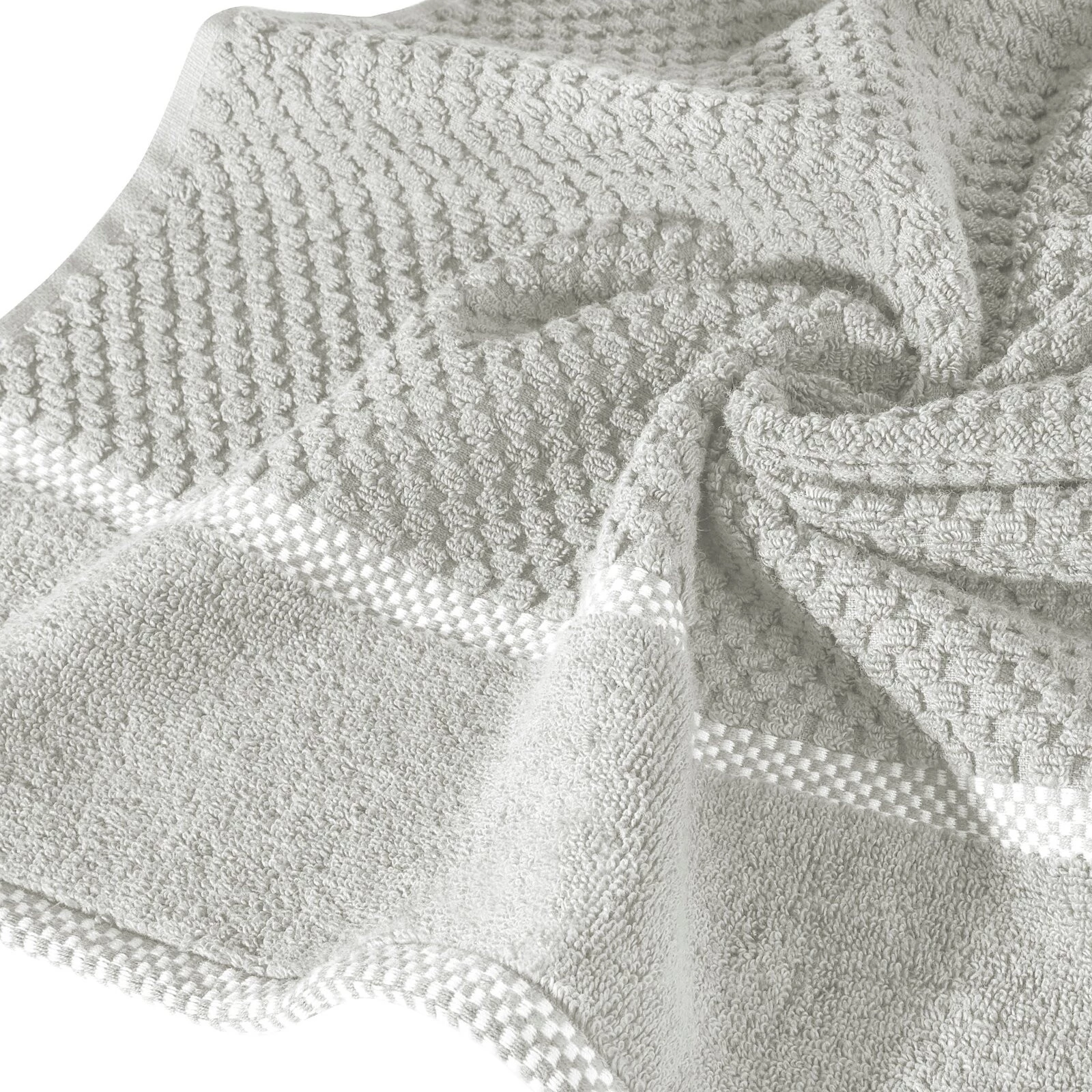 Bardzo chłonny ręcznik z miękkiej bawełny frotte z delikatnym tłoczeniem krateczki i bordiurą o tym samym, wyraźniejszym wzorze. Bardzo chłonny, łatwy w praniu. szerokość: 70 cm, długość: 140 cm, kolor: jasnoszary, Gramatura: 540 GSM, Skład: 100% bawełna; część ozdobna: 69% bawełna, 31% poliester