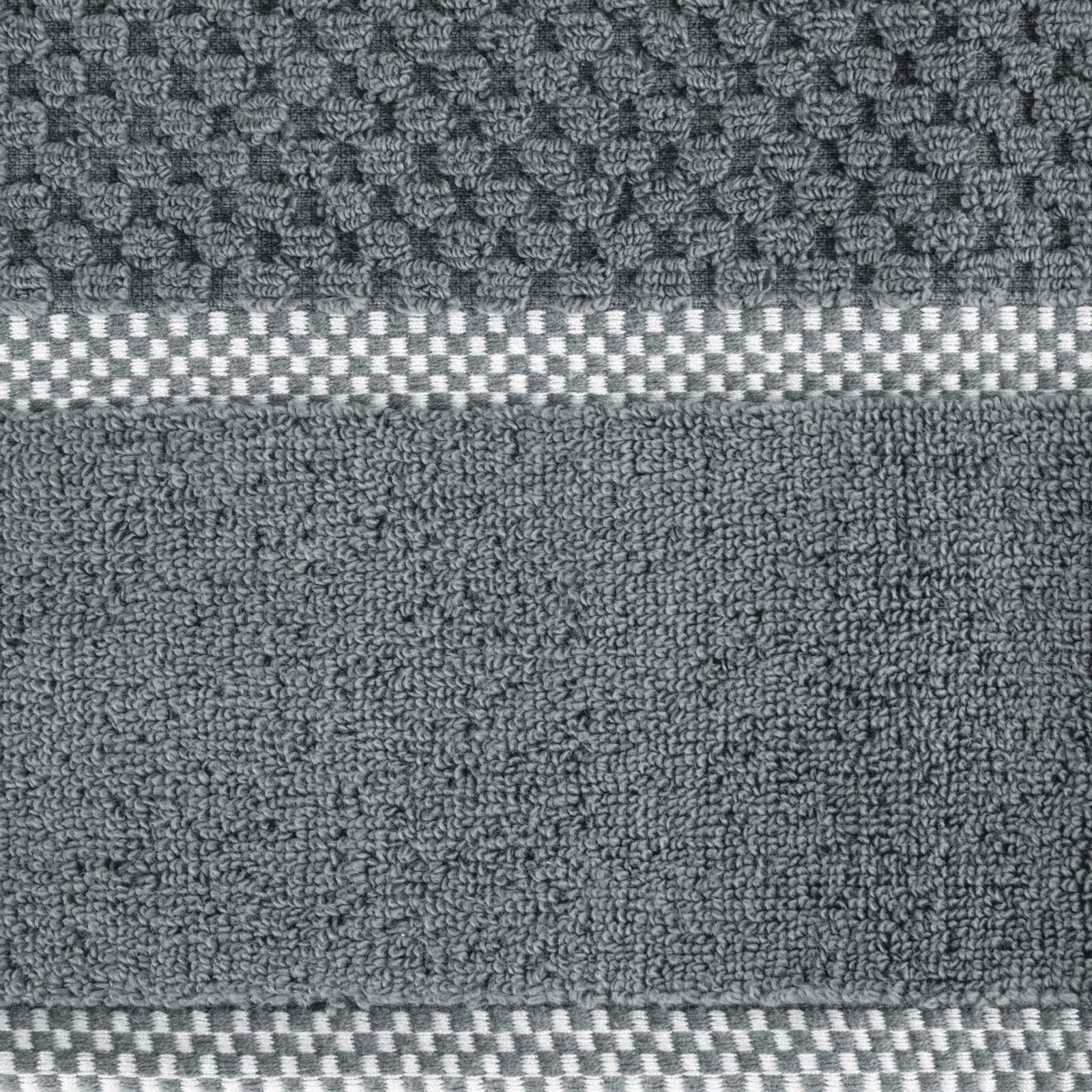 Bardzo chłonny ręcznik z miękkiej bawełny frotte z delikatnym tłoczeniem krateczki i bordiurą o tym samym, wyraźniejszym wzorze. Bardzo chłonny, łatwy w praniu. szerokość: 70 cm, długość: 140 cm, kolor: stalowy, Gramatura: 540 GSM, Skład: 100% bawełna; część ozdobna: 69% bawełna, 31% poliester