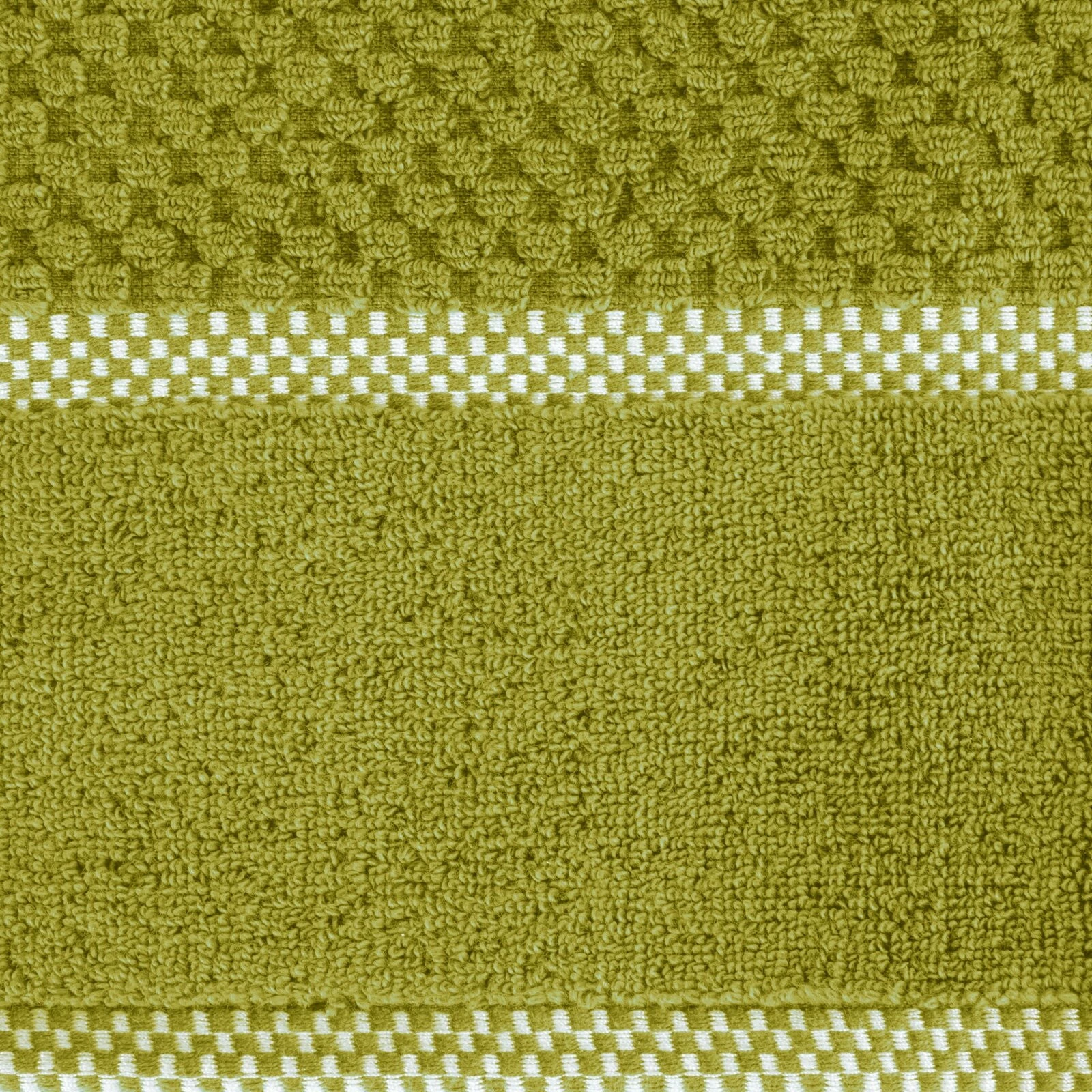 Bardzo chłonny ręcznik z miękkiej bawełny frotte z delikatnym tłoczeniem krateczki i bordiurą o tym samym, wyraźniejszym wzorze. Bardzo chłonny, łatwy w praniu. szerokość: 70 cm, długość: 140 cm, kolor: oliwkowy, Gramatura: 540 GSM, Skład: 100% bawełna; część ozdobna: 69% bawełna, 31% poliester