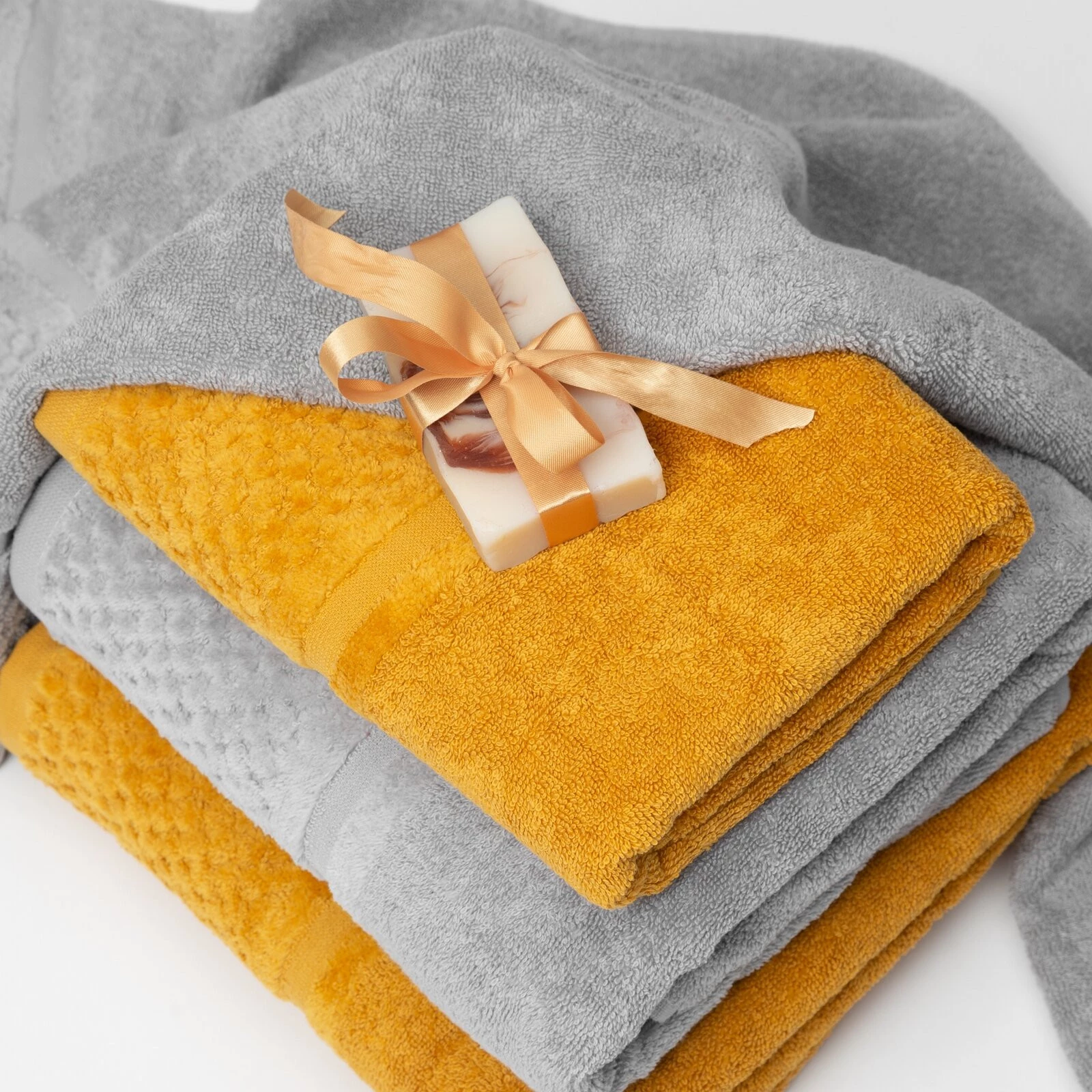 Klasyczny ręcznik kąpielowy z chłonnej tkaniny bawełnianej o splocie frotte. Minimalistyczna bordiura z weluru z dodatkiem lśniącej, metalicznej nici. szerokość: 70 cm, długość: 140 cm, kolor: biały, Gramatura: 550 GSM, Skład: 100% bawełna