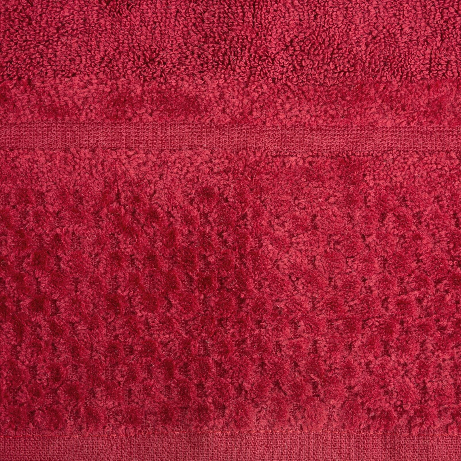 Klasyczny ręcznik kąpielowy z chłonnej tkaniny bawełnianej o splocie frotte. Minimalistyczna bordiura z weluru z dodatkiem lśniącej, metalicznej nici. szerokość: 30 cm, długość: 50 cm, kolor: czerwony, Gramatura: 550 GSM, Skład: 100% bawełna