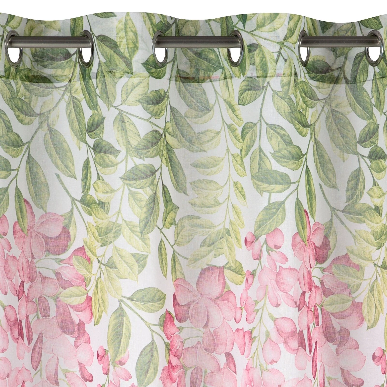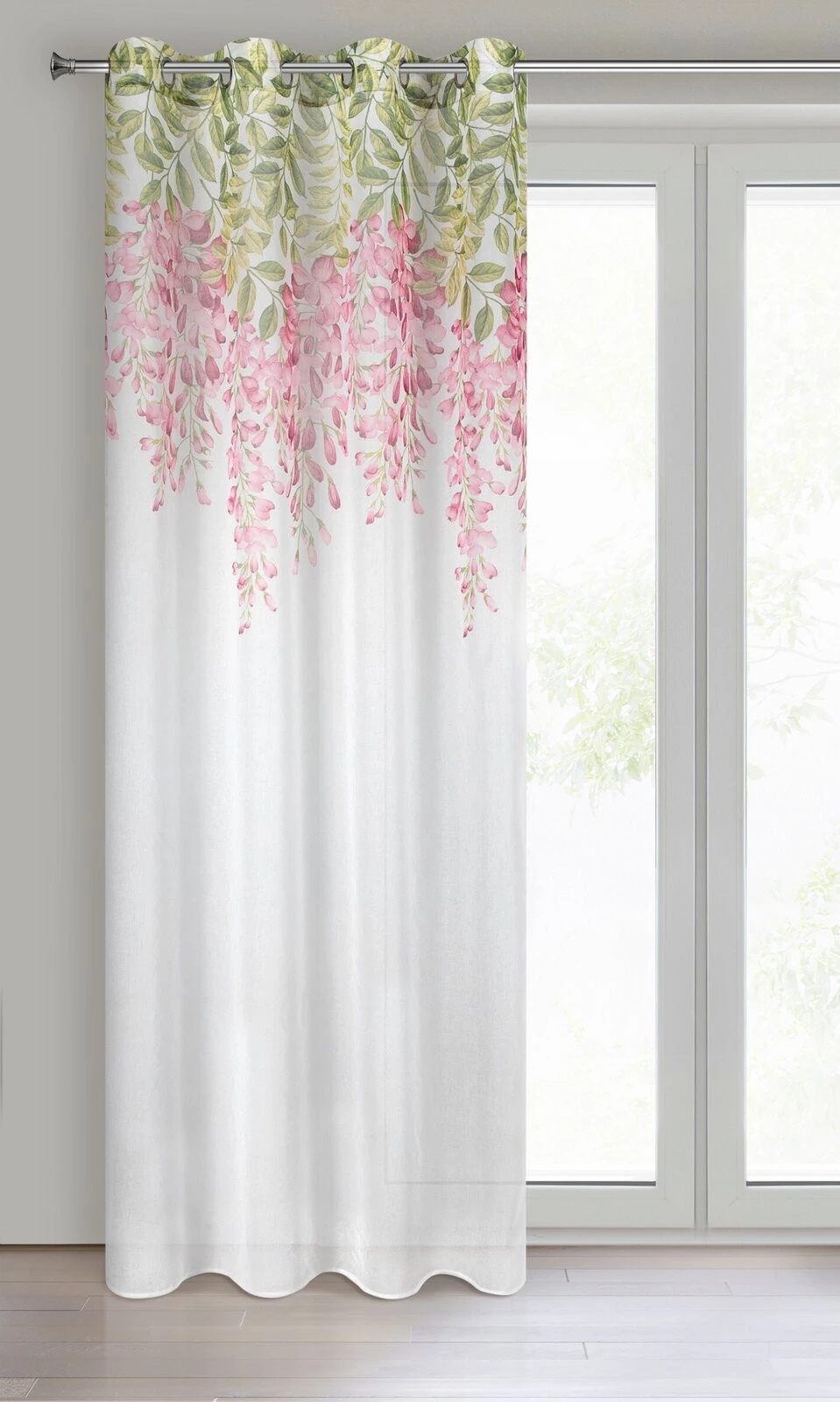 Firana gotowa z kwiatowym nadrukiem szerokość: 140 cm, długość: 250 cm, kolor: biały, Gramatura: 80 GSM, Skład: 100% poliester