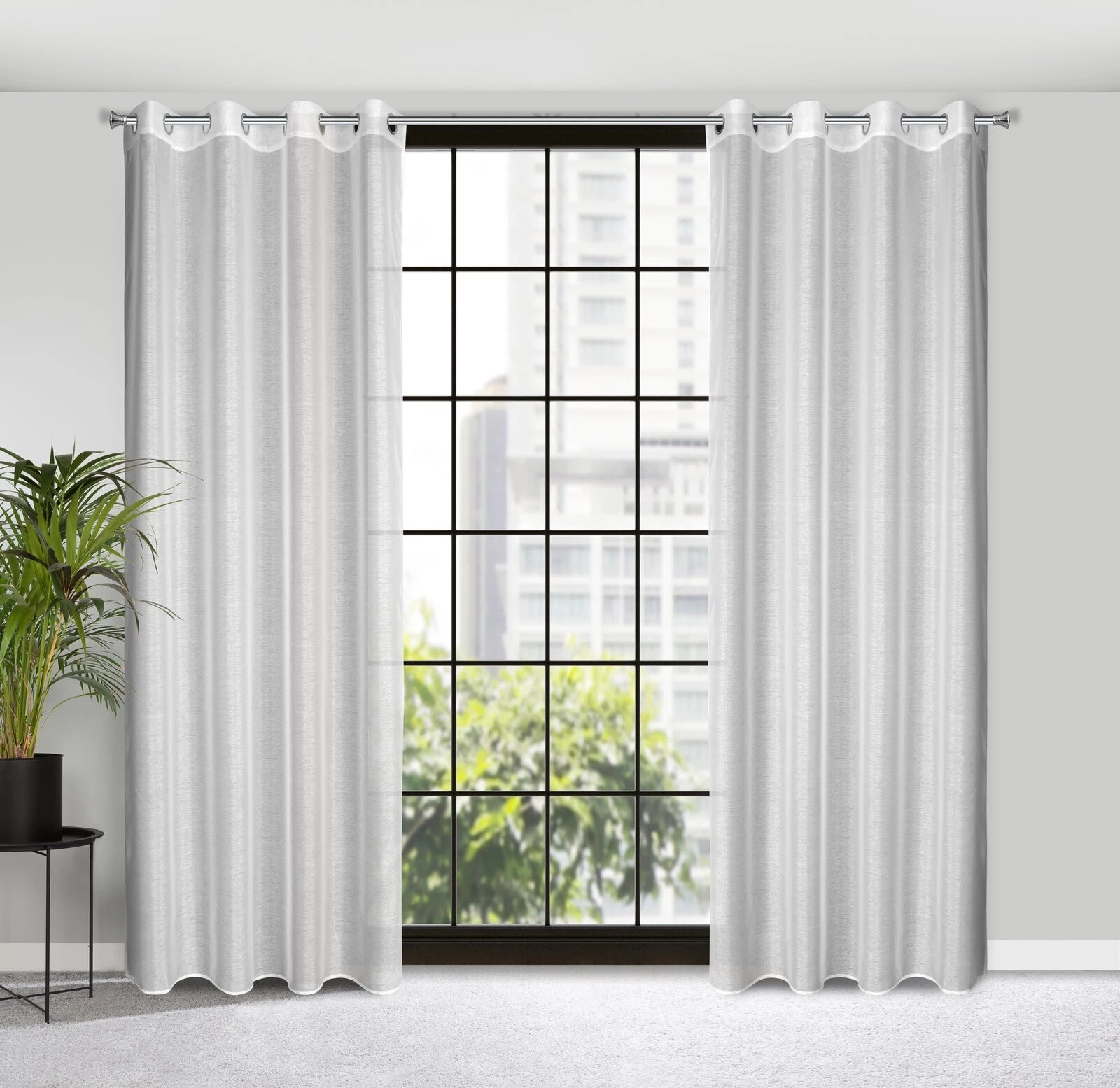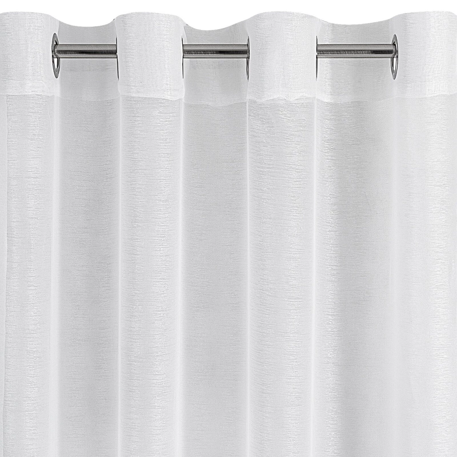 Delikatna firana uszyta z tkaniny o strukturze drobnego deszczyku doskonale przepuszcza światło. Łatwa w prasowaniu i praniu dekoracja. Wzór poziomy. szerokość: 140 cm, długość: 250 cm, kolor: biały, Gramatura: 50 GSM, Skład: 100% poliester