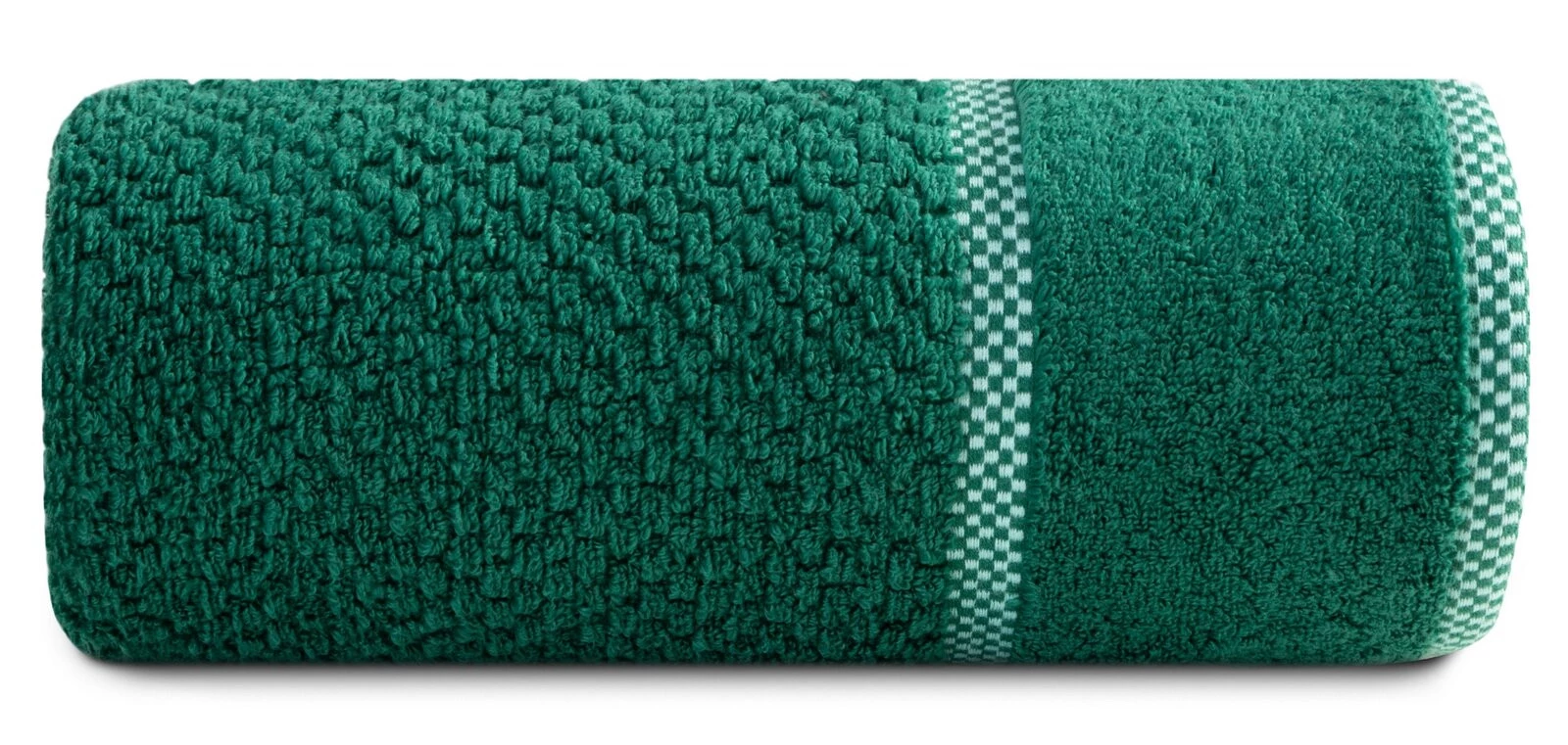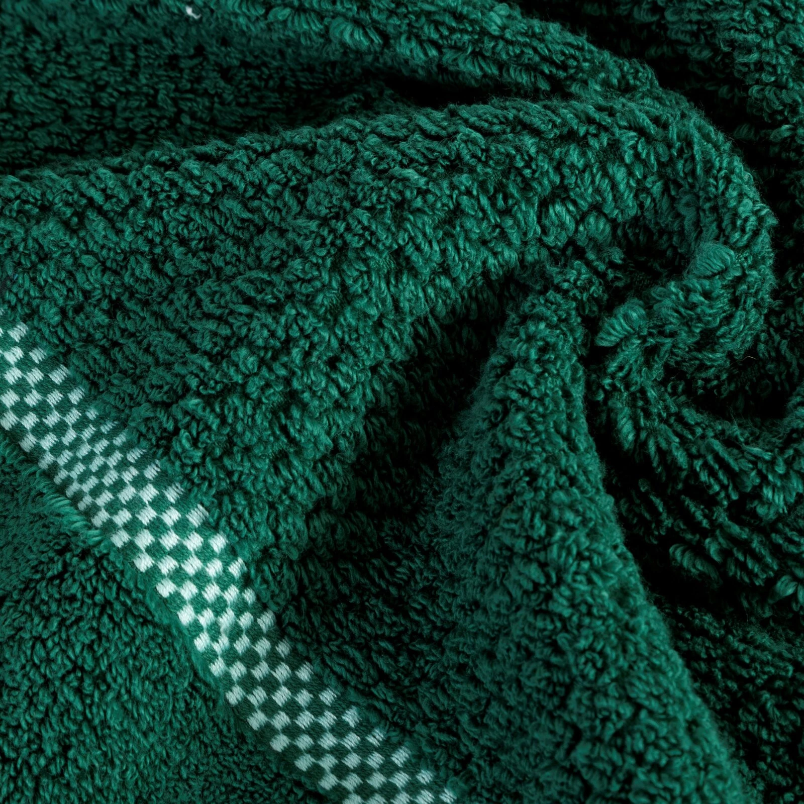 Bardzo chłonny ręcznik z miękkiej bawełny frotte z delikatnym tłoczeniem krateczki i bordiurą o tym samym, wyraźniejszym wzorze. Bardzo chłonny, łatwy w praniu. szerokość: 50 cm, długość: 90 cm, kolor: ciemnozielony, Gramatura: 540 GSM, Skład: 100% bawełna; część ozdobna: 69% bawełna, 31% poliester