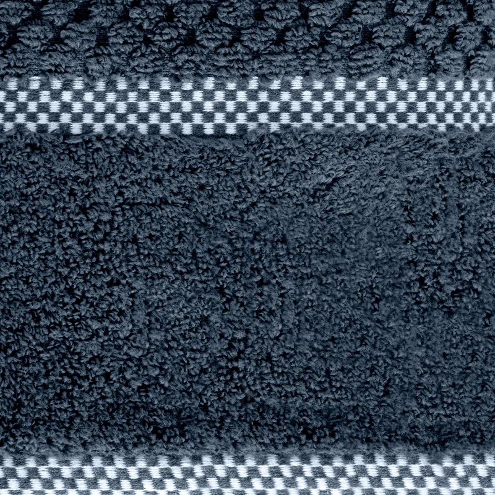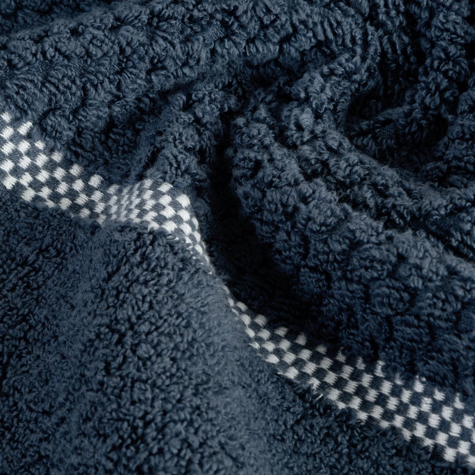 Bardzo chłonny ręcznik z miękkiej bawełny frotte z delikatnym tłoczeniem krateczki i bordiurą o tym samym, wyraźniejszym wzorze. Bardzo chłonny, łatwy w praniu. szerokość: 50 cm, długość: 90 cm, kolor: granatowy, Gramatura: 540 GSM, Skład: 100% bawełna; część ozdobna: 69% bawełna, 31% poliester
