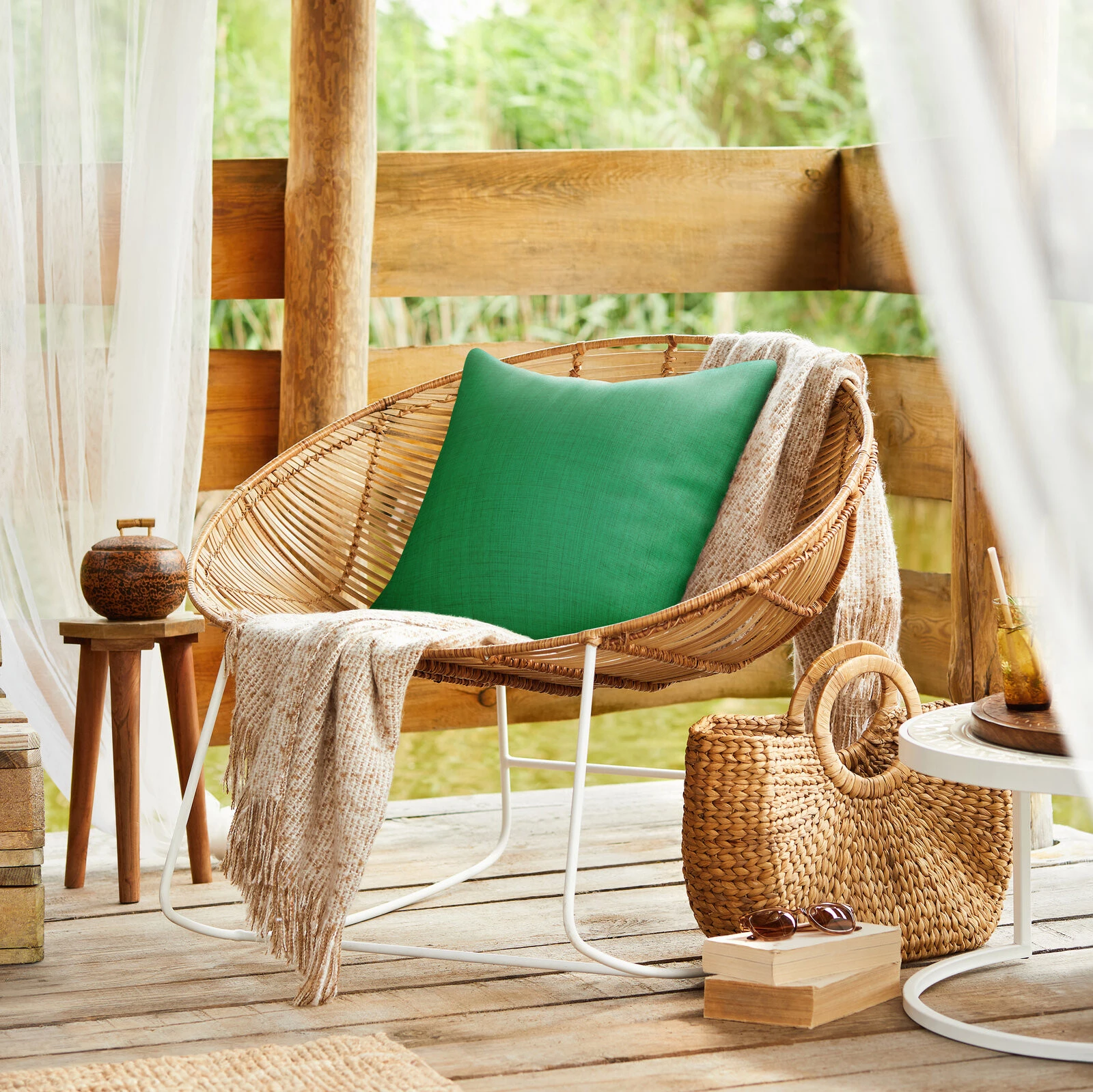 - Poszewka dekoracyjna z tkaniny wodoodpornej szerokość: 45 cm, długość: 45 cm, kolor: zielony, Gramatura: 230 GSM, Skład: 100% poliester