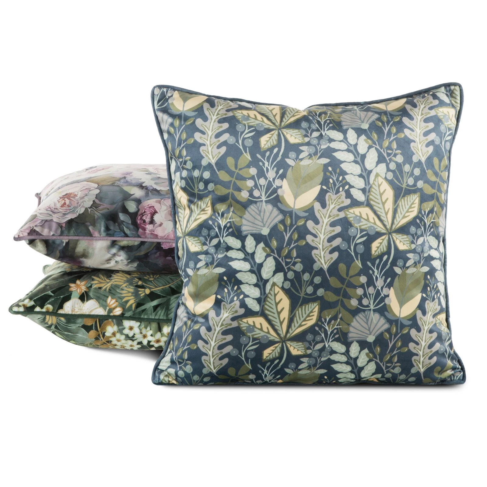 - Poszewka welwetowa ze wzorem kwiatowym szerokość: 45 cm, długość: 45 cm, kolor: granatowy, Gramatura: 200 GSM, Skład: 100% poliester