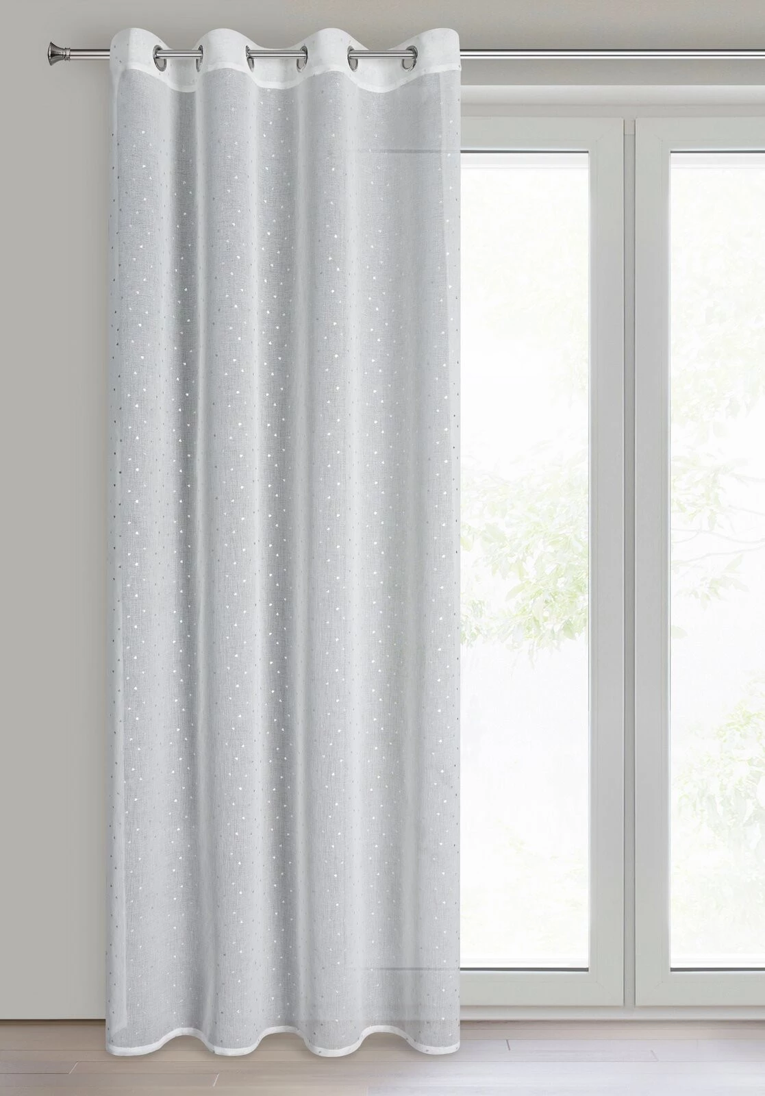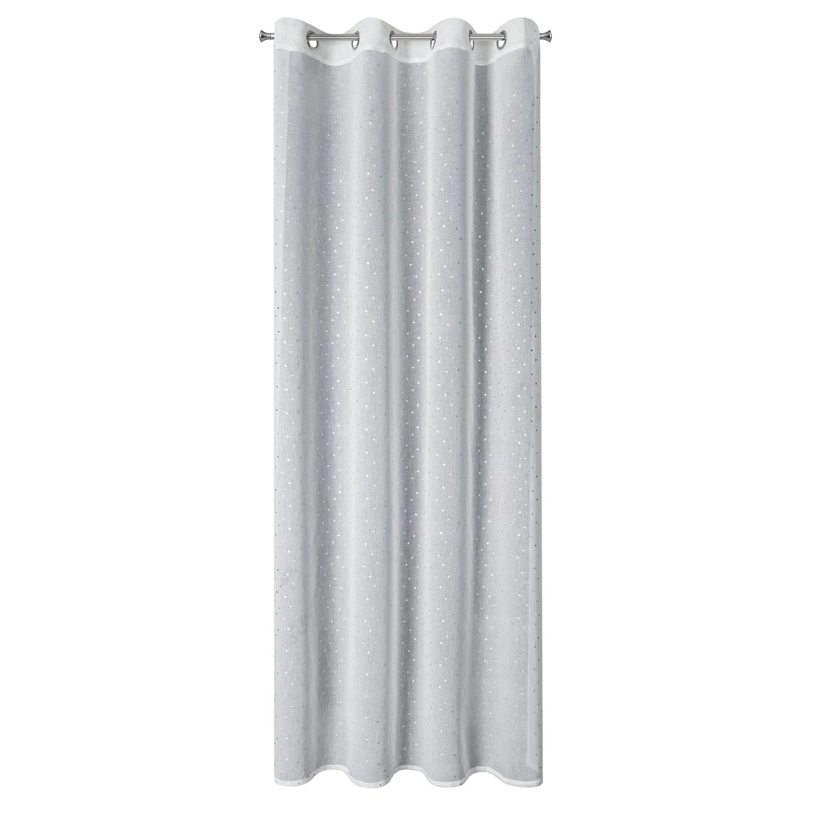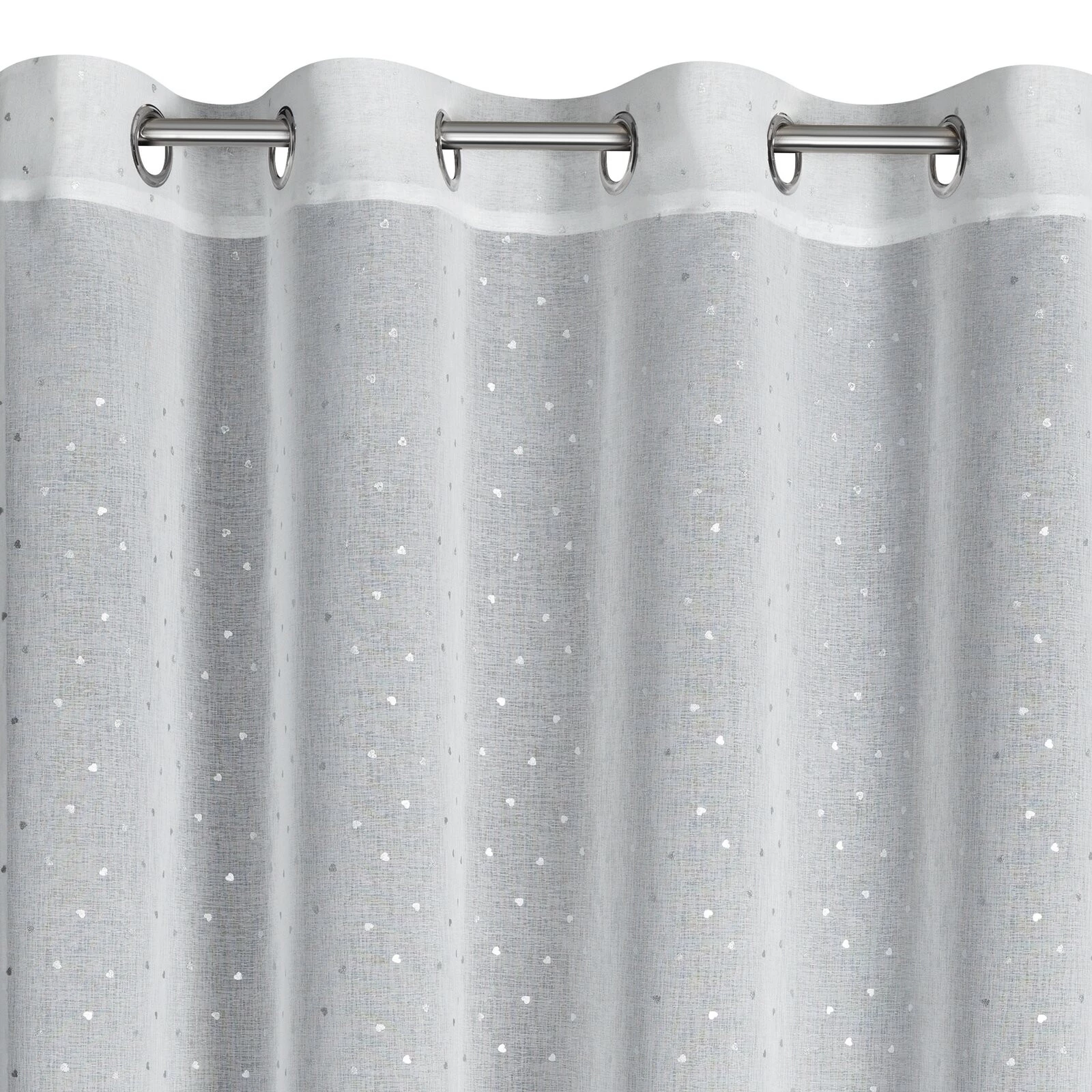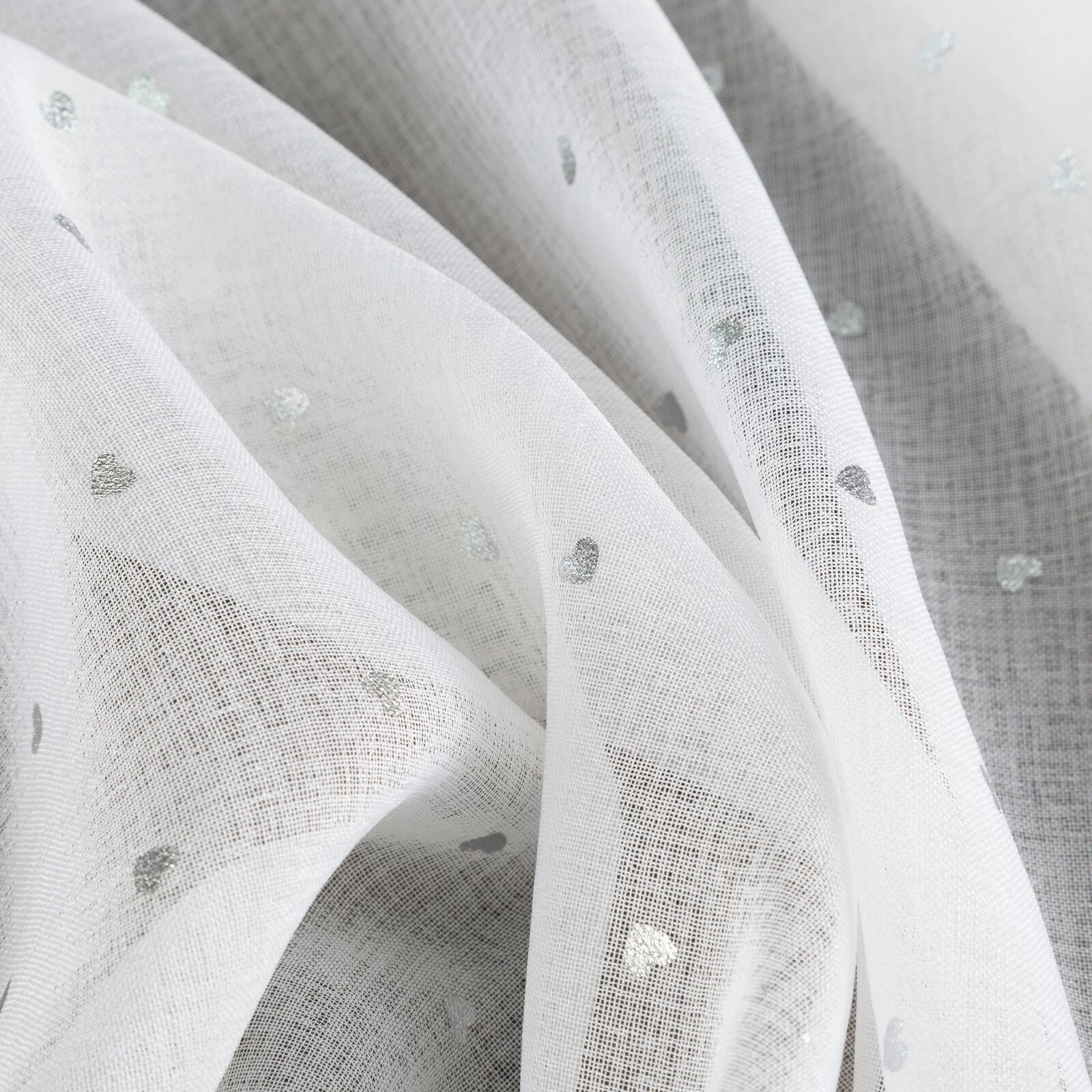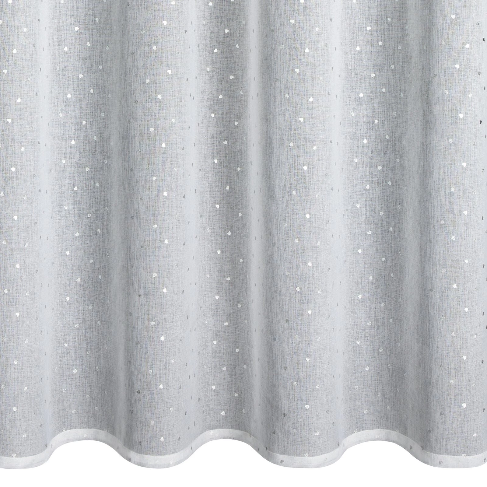 Firana gotowa z błyszczącym nadrukiem w serduszka szerokość: 140 cm, długość: 250 cm, kolor: biały, Gramatura: 70 GSM, Skład: 100% poliester