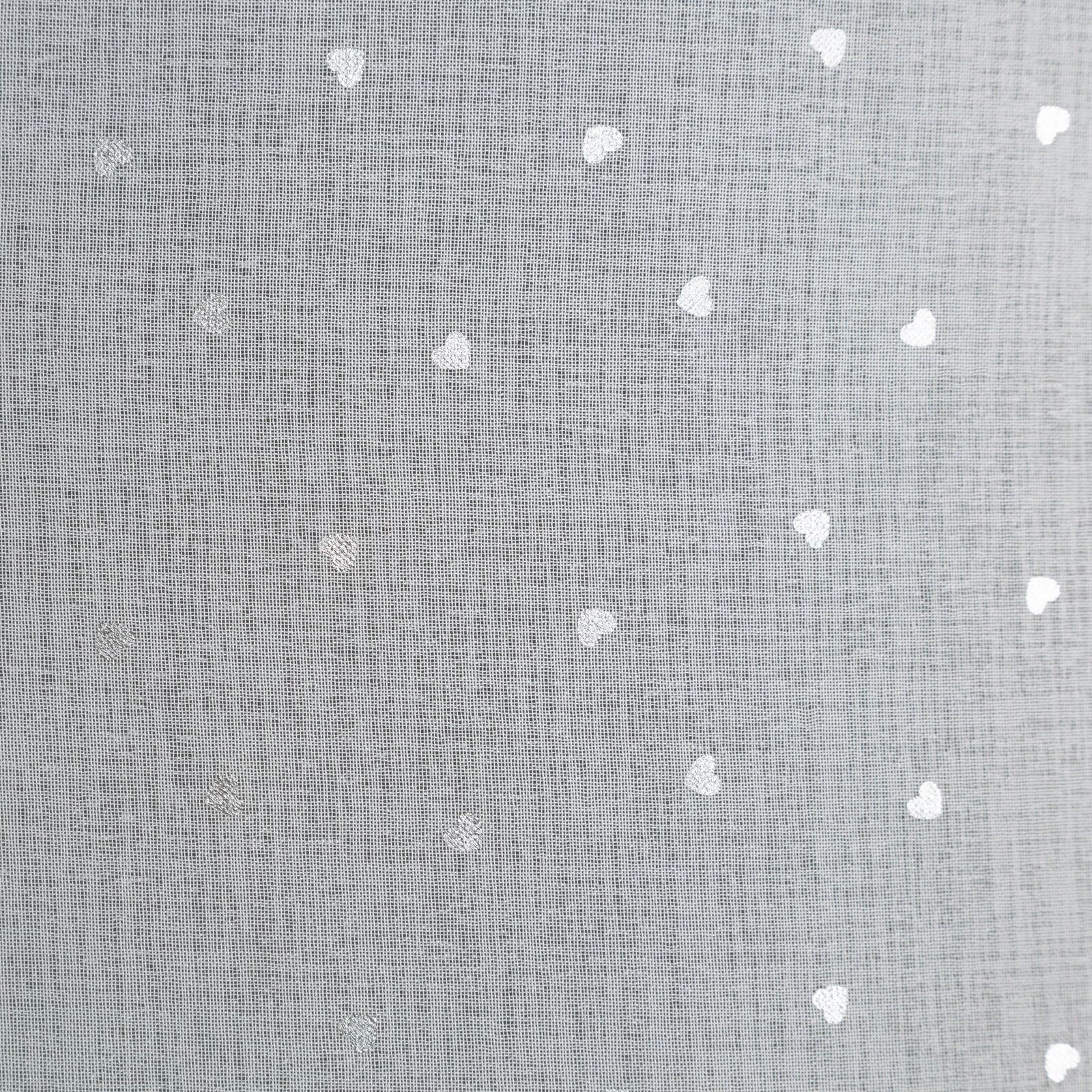 - Firana gotowa z błyszczącym nadrukiem w serduszka szerokość: 140 cm, długość: 250 cm, kolor: biały, Gramatura: 70 GSM, Skład: 100% poliester