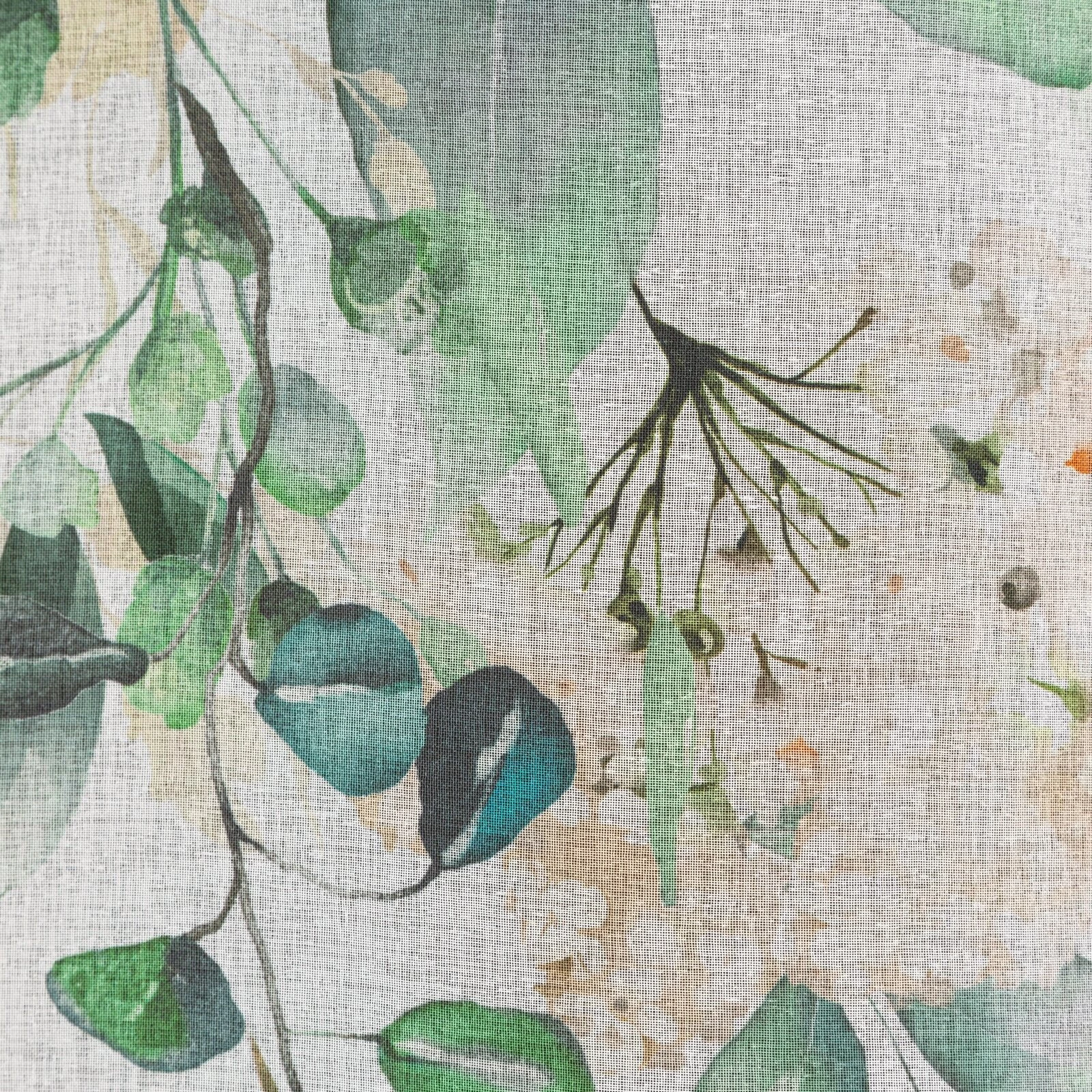 - Zasłona gotowa z kwiatowym nadrukiem w górnej części szerokość: 350 cm, długość: 250 cm, kolor: biały, Gramatura: 70 GSM, Skład: 100% poliester