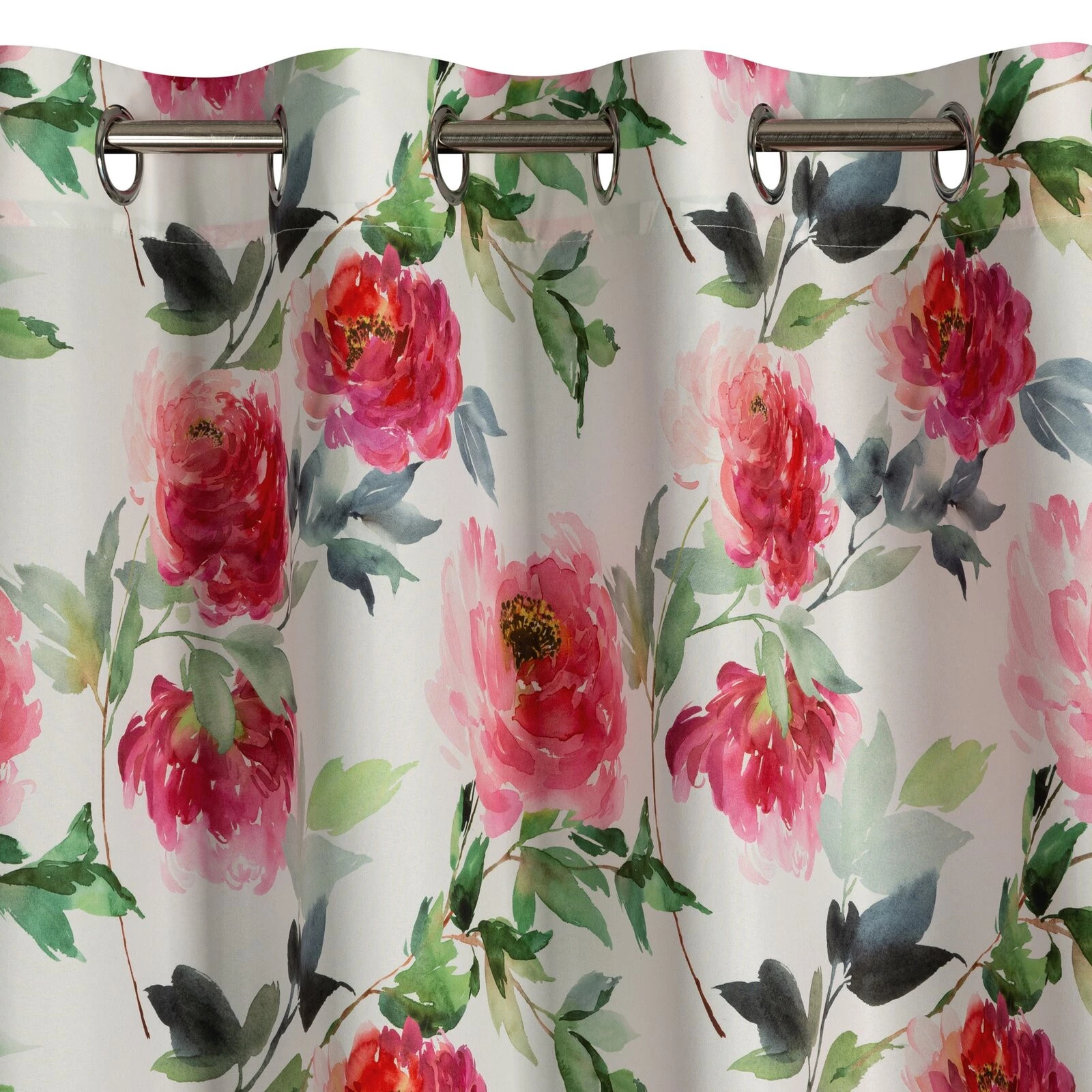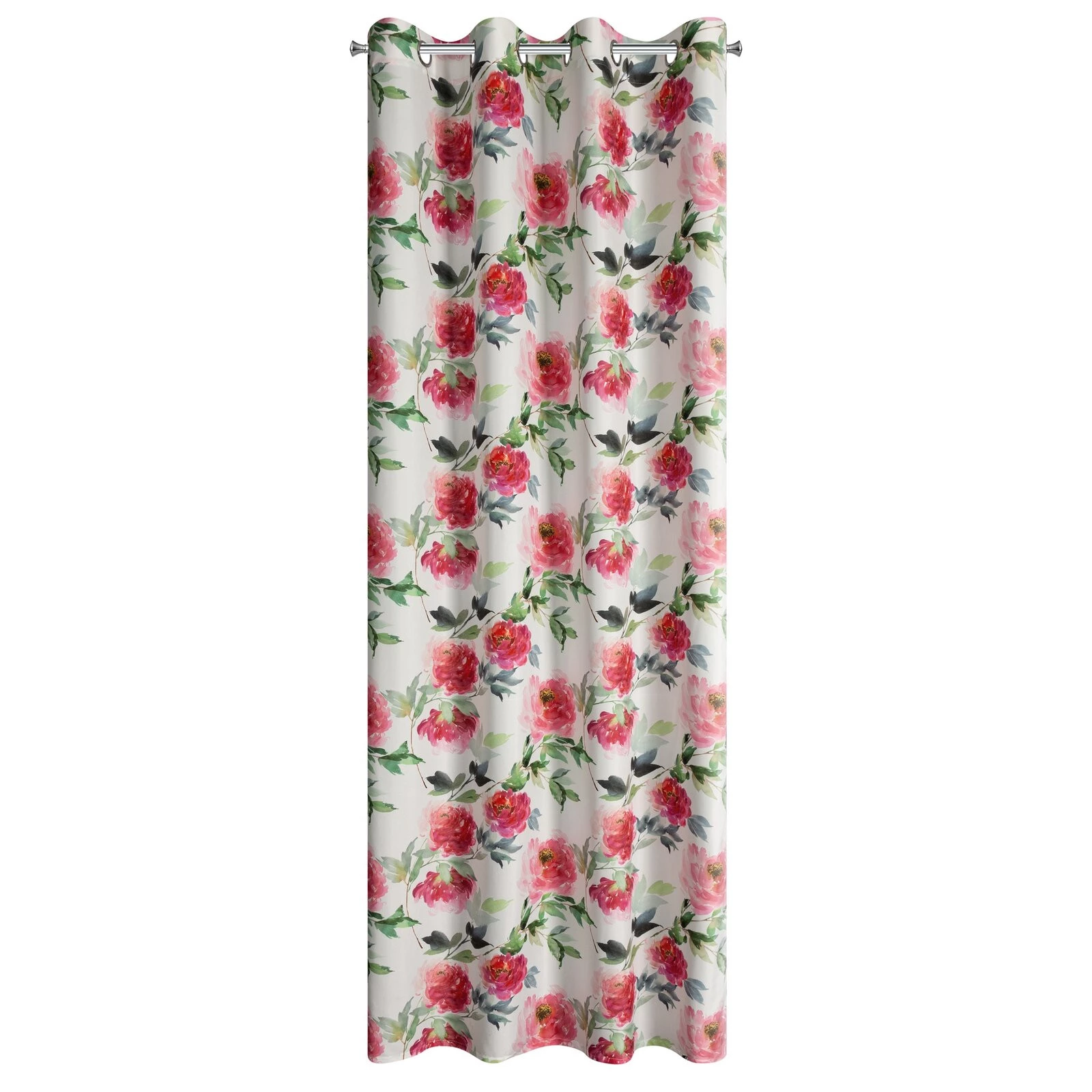 - Zasłona gotowa z mikrofibry z kwiatowym nadrukiem szerokość: 140 cm, długość: 250 cm, kolor: biały, Gramatura: 75 GSM, Skład: 100% poliester