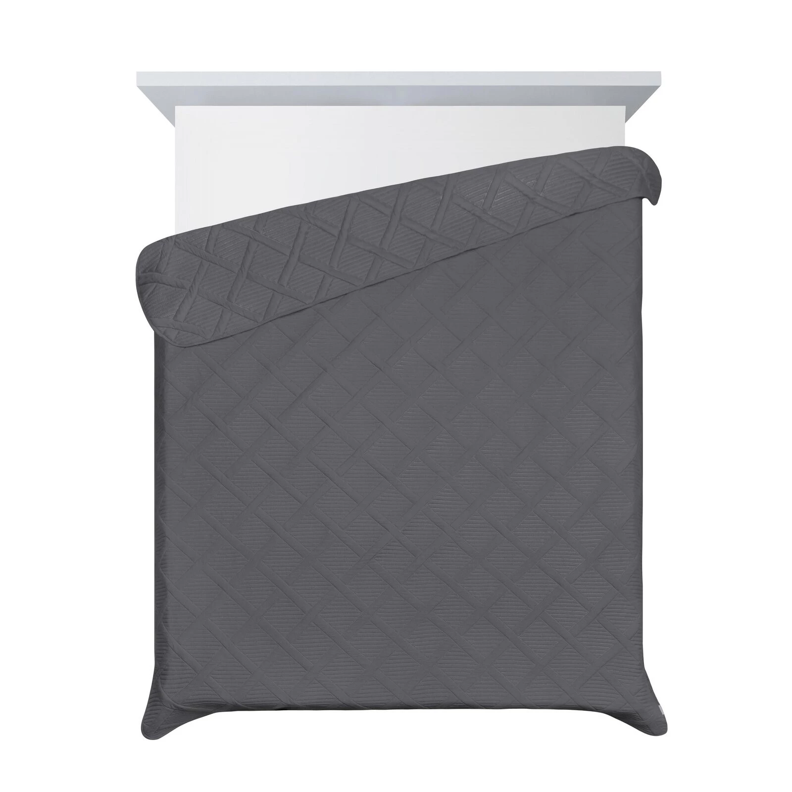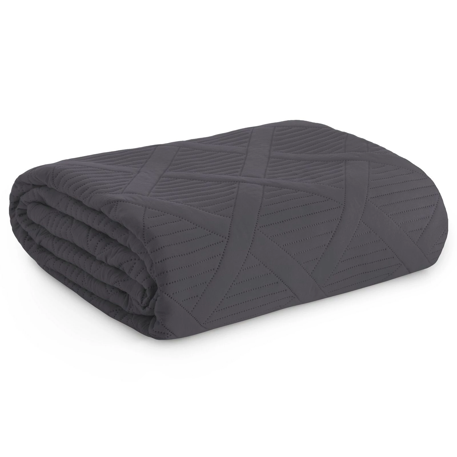 Narzuta jednokolorowa, wykonana techniką hot press szerokość: 220 cm, długość: 240 cm, kolor: stalowy, Gramatura: 85+70+120 GSM, Skład: 100% poliester