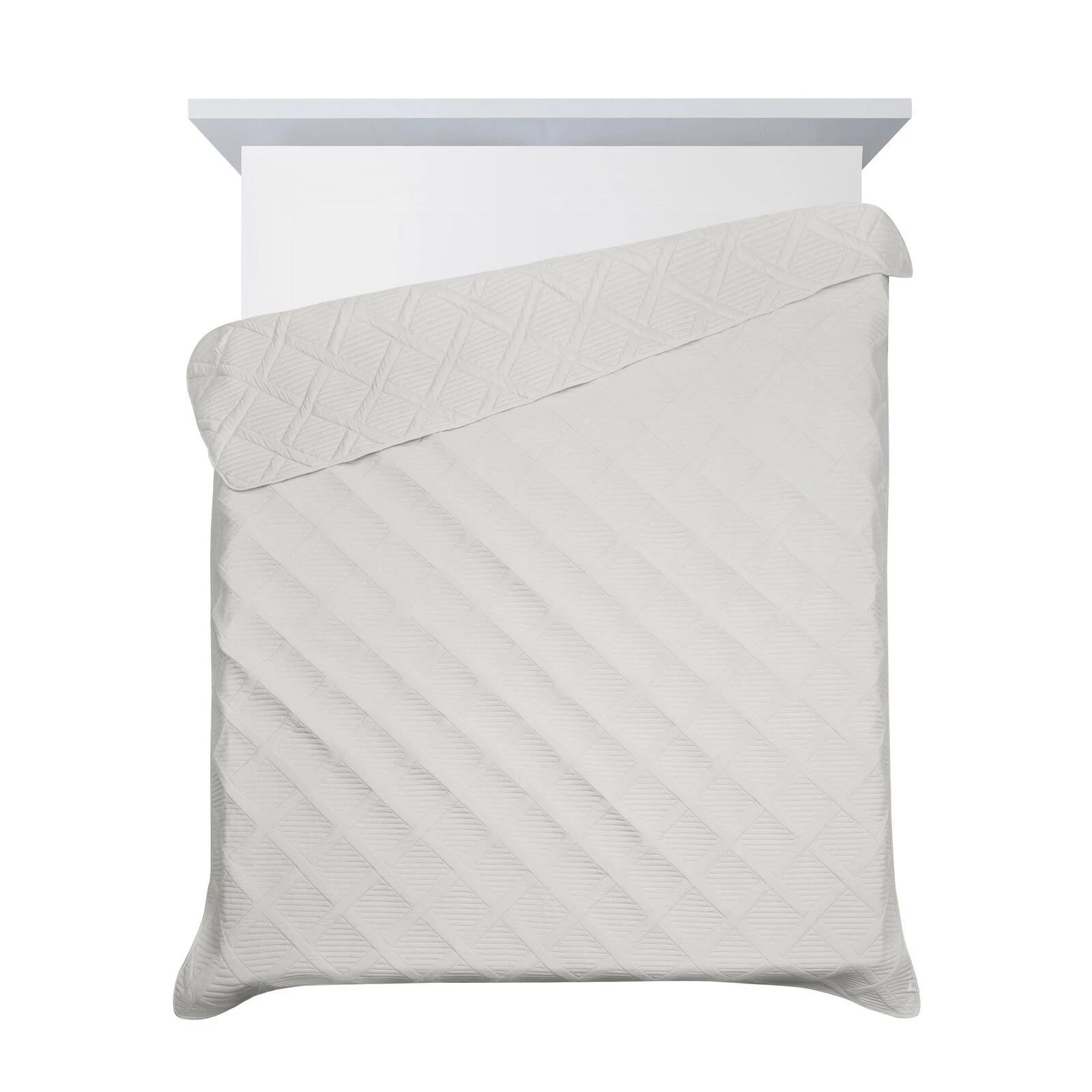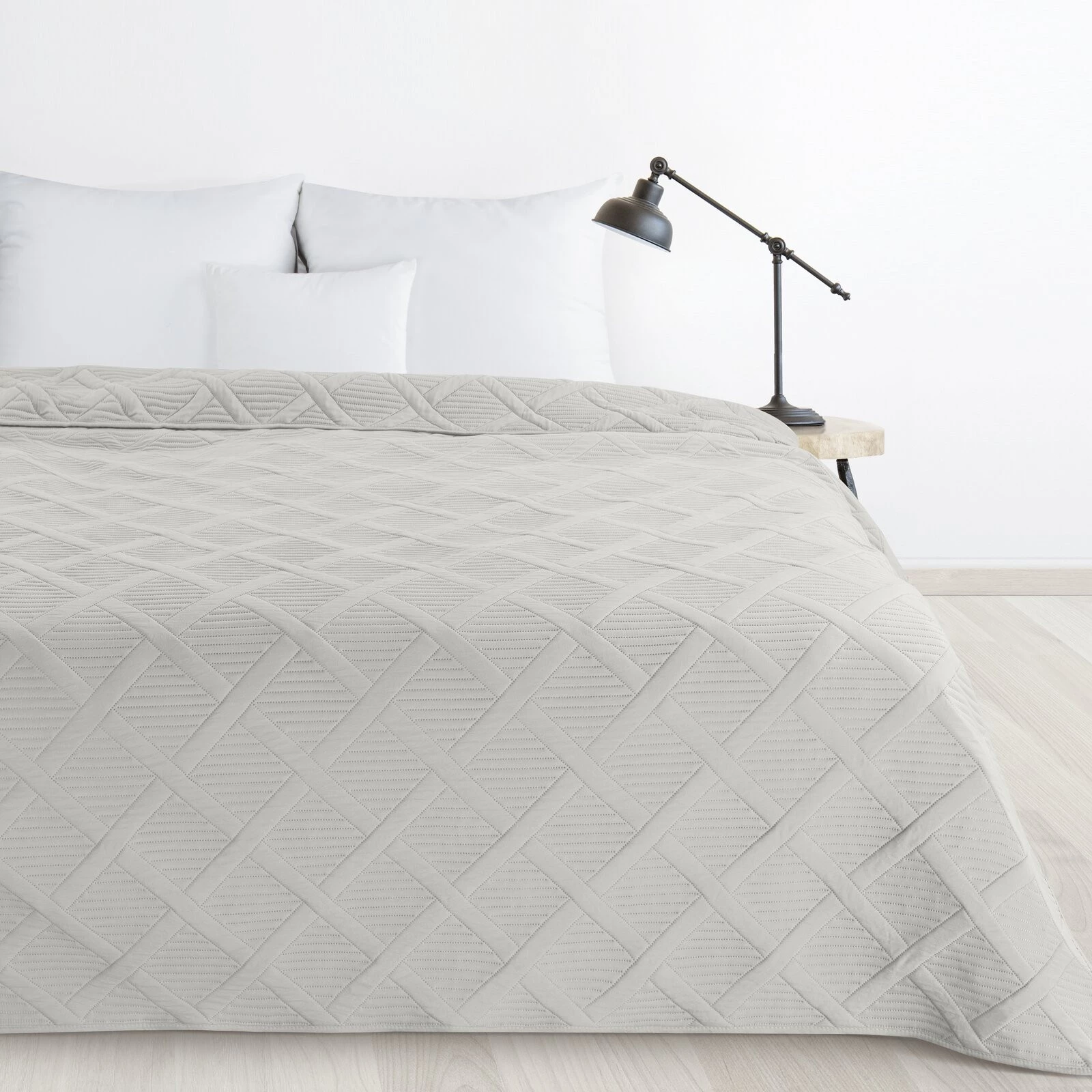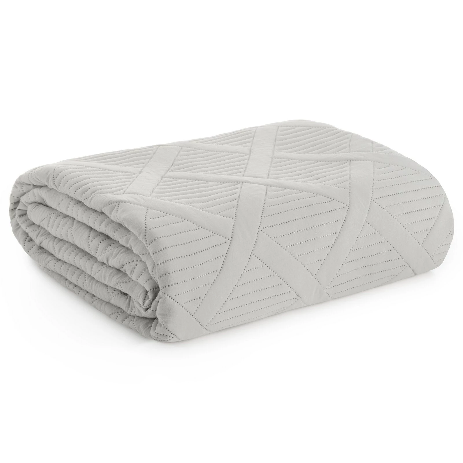 Narzuta jednokolorowa, wykonana techniką hot press szerokość: 220 cm, długość: 240 cm, kolor: srebrny, Gramatura: 85+70+120 GSM, Skład: 100% poliester