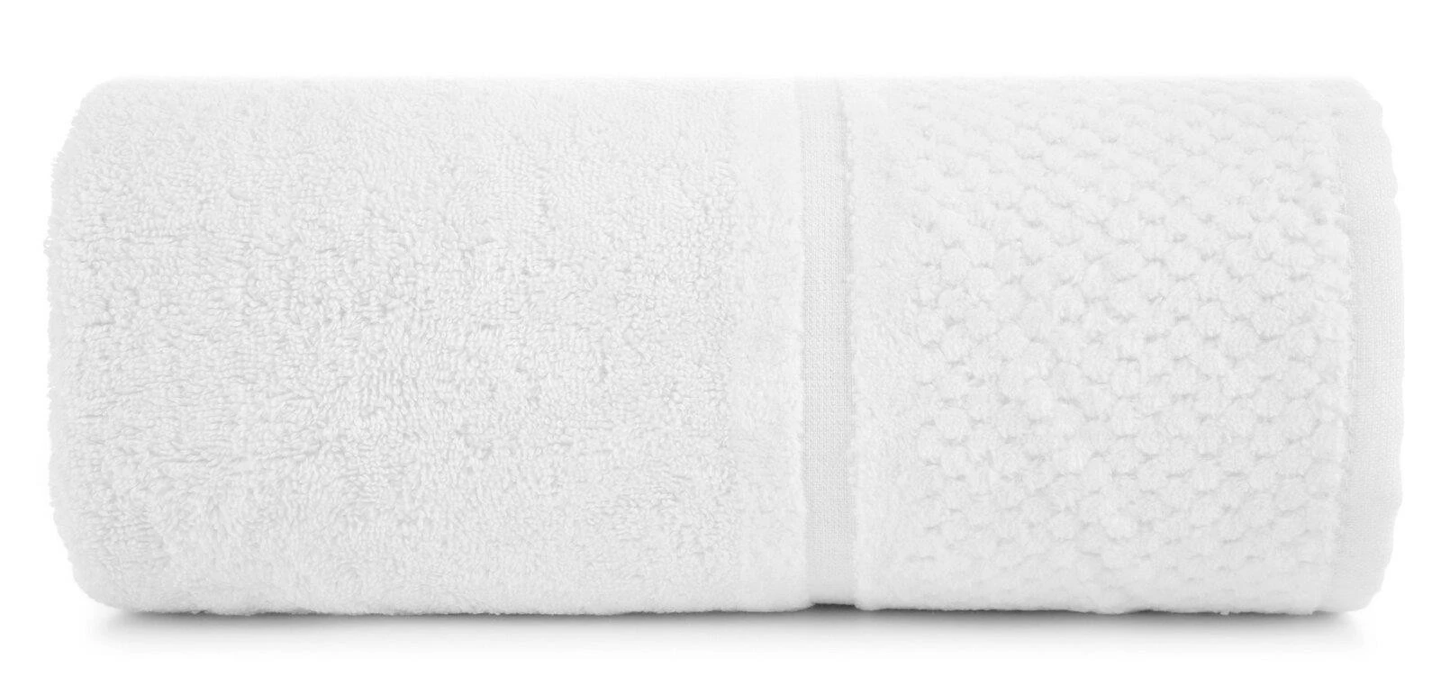 Klasyczny ręcznik kąpielowy z chłonnej tkaniny bawełnianej o splocie frotte. Minimalistyczna bordiura z weluru z dodatkiem lśniącej, metalicznej nici. szerokość: 30 cm, długość: 50 cm, kolor: biały, Gramatura: 550 GSM, Skład: 100% bawełna