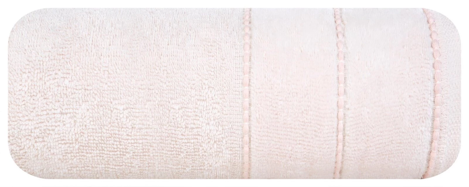Ręcznik z ozdobną welurową bordiurą w pasy szerokość: 50 cm, długość: 90 cm, kolor: różowy, Gramatura: 500 GSM, Skład: 100% bawełna; część ozdobna: 60% bawełna, 40% poliester