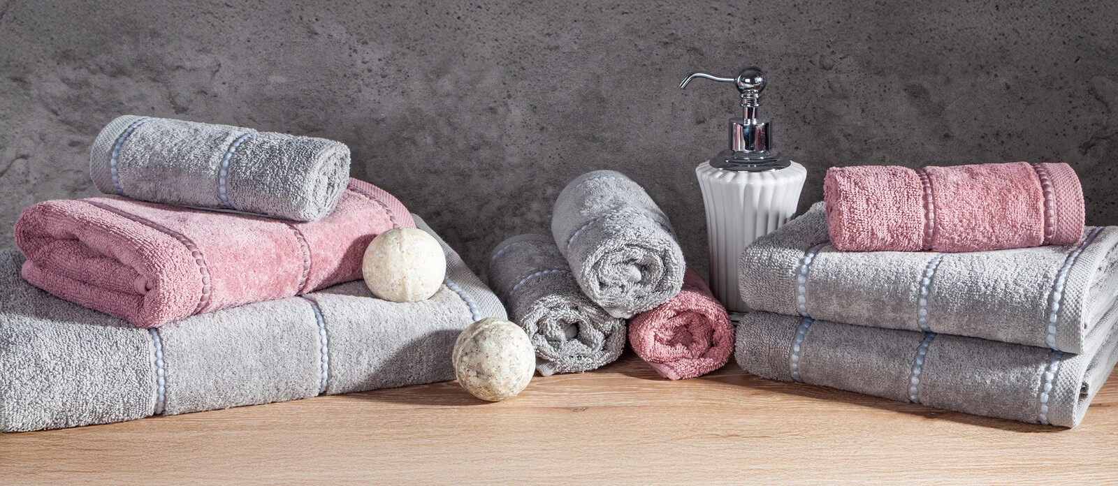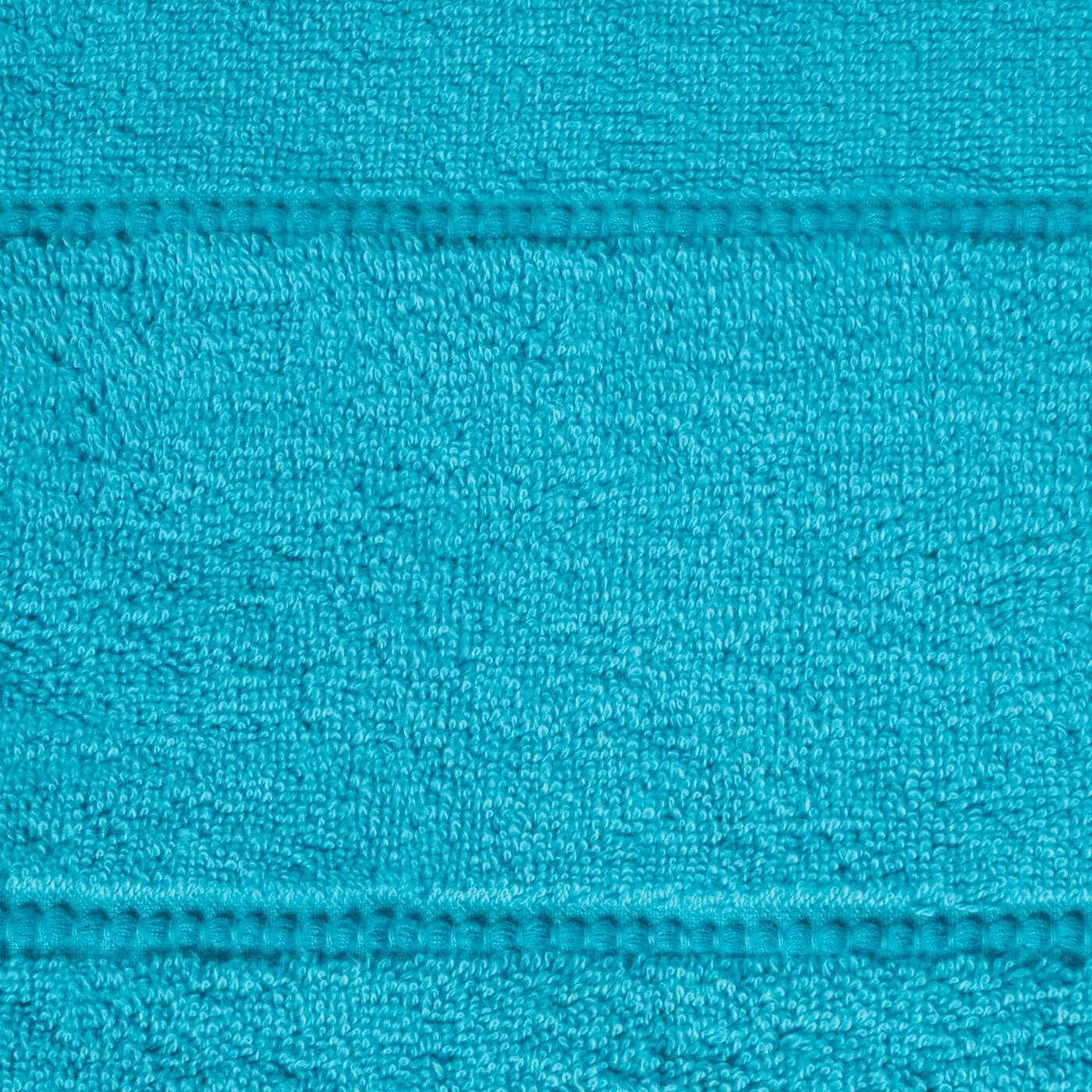 Ręcznik z ozdobną welurową bordiurą w pasy szerokość: 50 cm, długość: 90 cm, kolor: turkusowy, Gramatura: 500 GSM, Skład: 100% bawełna; część ozdobna: 60% bawełna, 40% poliester