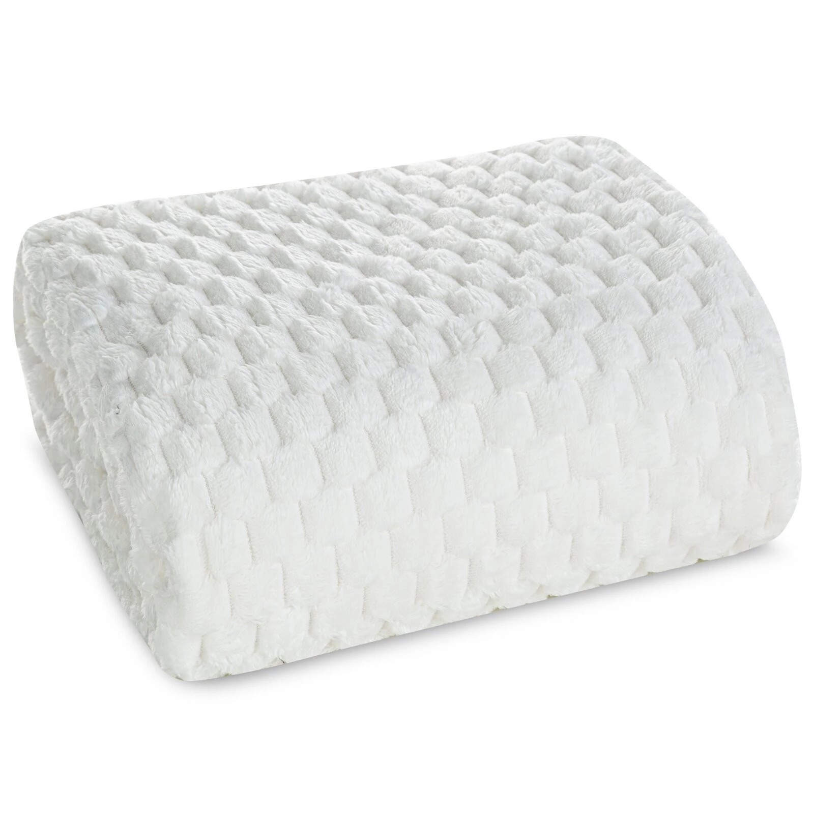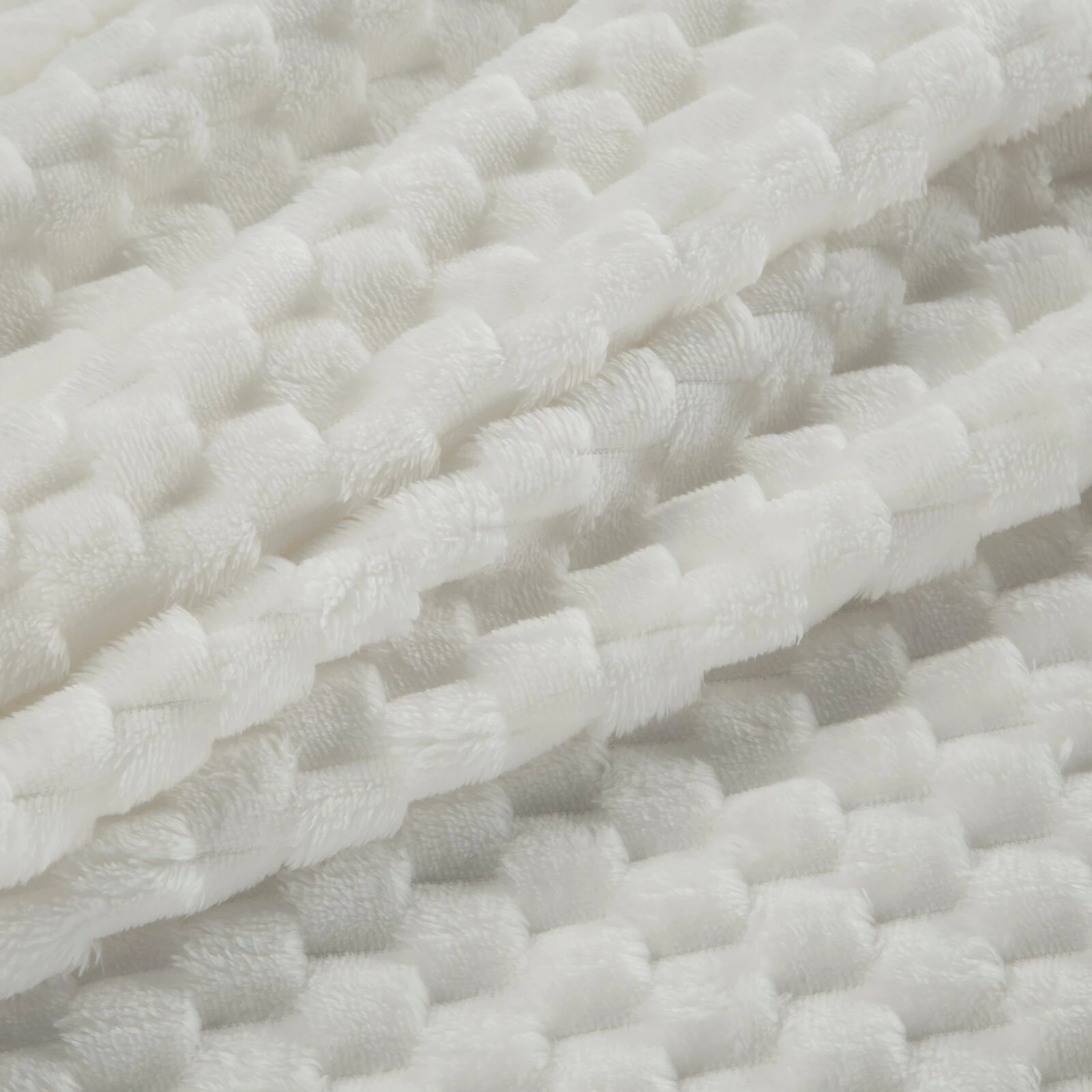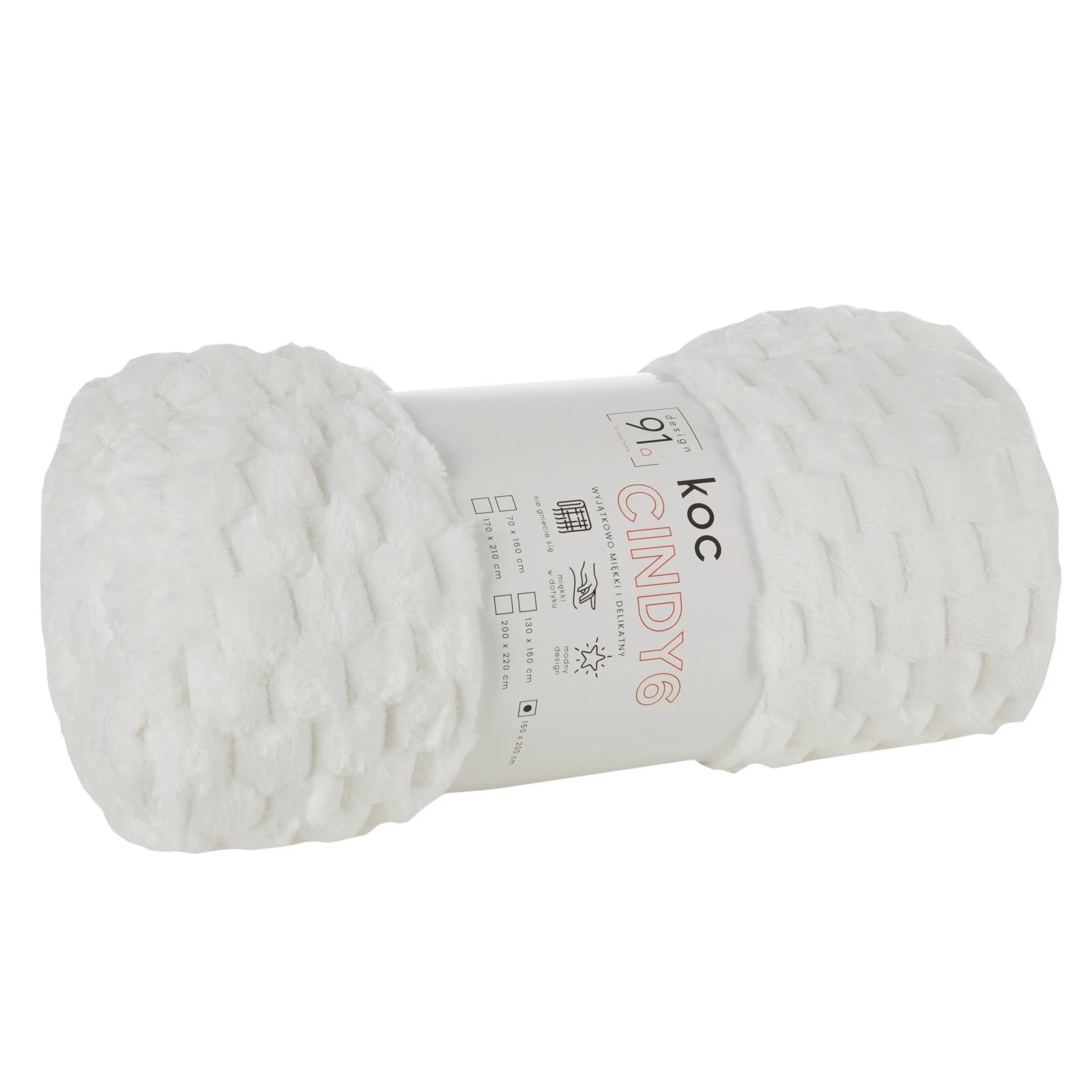 Koc flano bardzo miękki w dotyku z efektem 3d szerokość: 150 cm, długość: 200 cm, kolor: biały, Gramatura: 260 GSM, Skład: 100% poliester