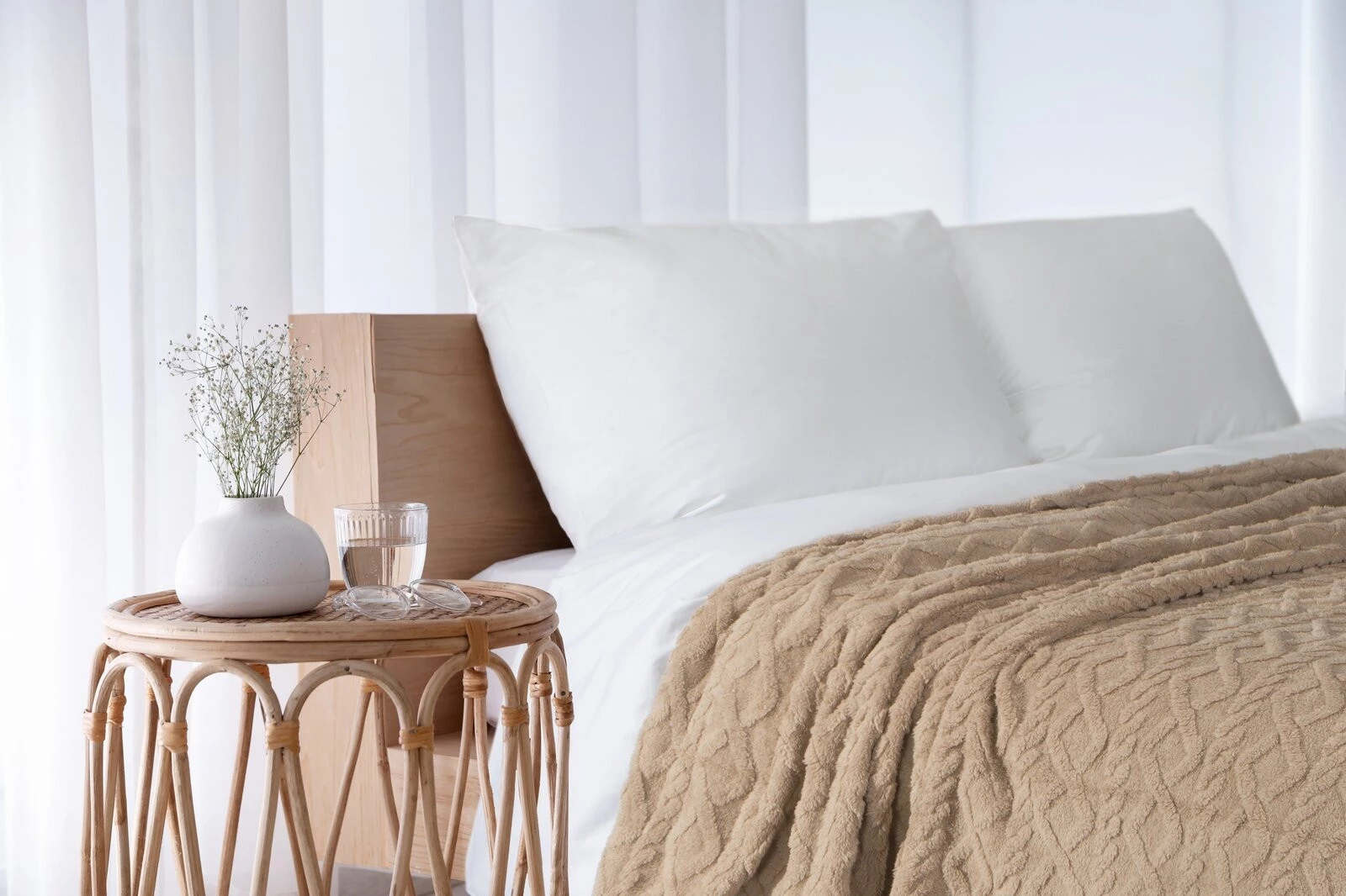 Miękki w dotyku koc z ozdobnym plecionym warkoczem szerokość: 200 cm, długość: 220 cm, kolor: beżowy, Gramatura: 260 GSM, Skład: 100% poliester