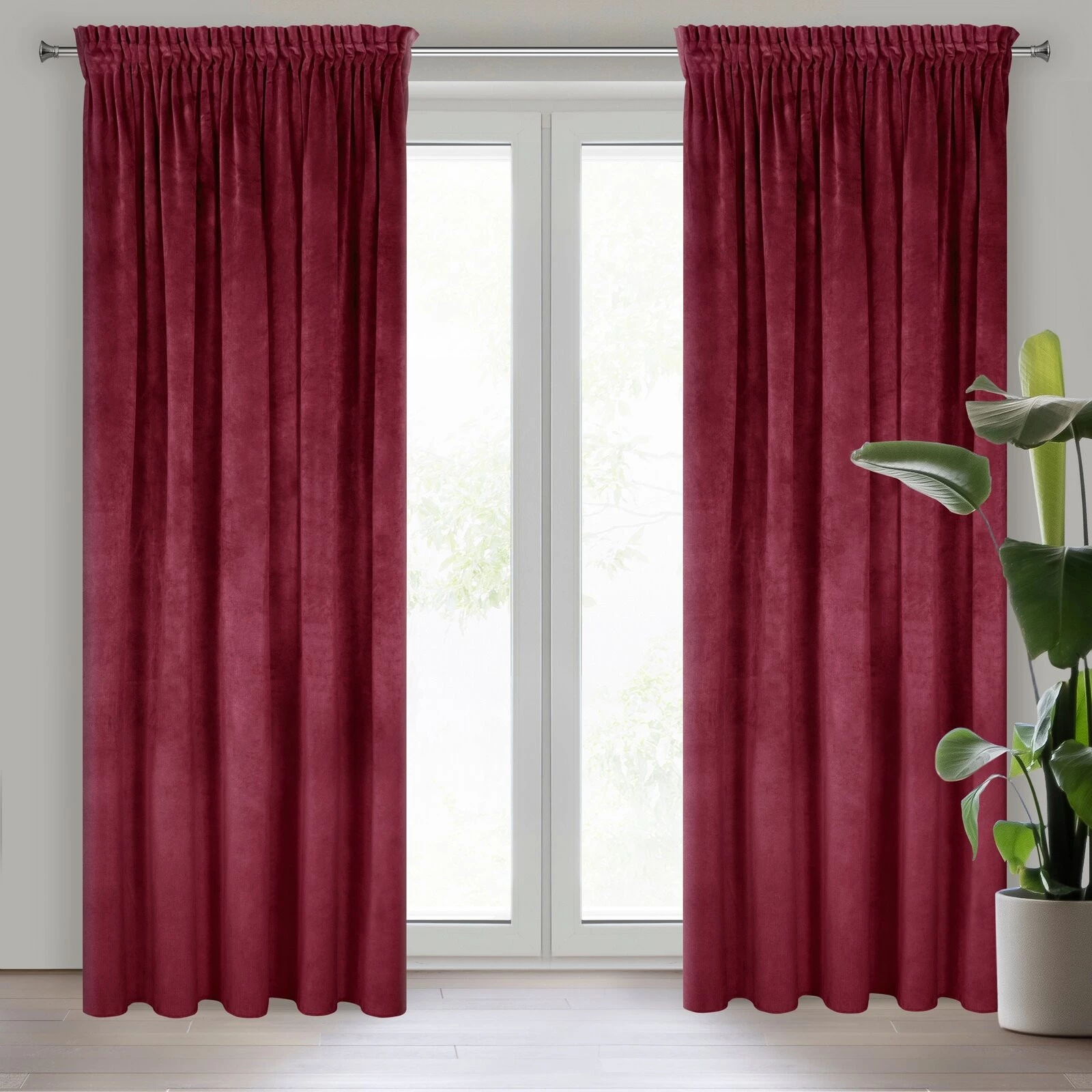 Gładka, jednokolorowa zasłona z miękkiego welwetu o charakterystycznym dla aksamitu połysku. Taśma marszcząca zawiera tunel do upięć na karniszu drążkowym. szerokość: 140 cm, długość: 270 cm, kolor: bordowy, Gramatura: 290 GSM, Skład: 100% poliester