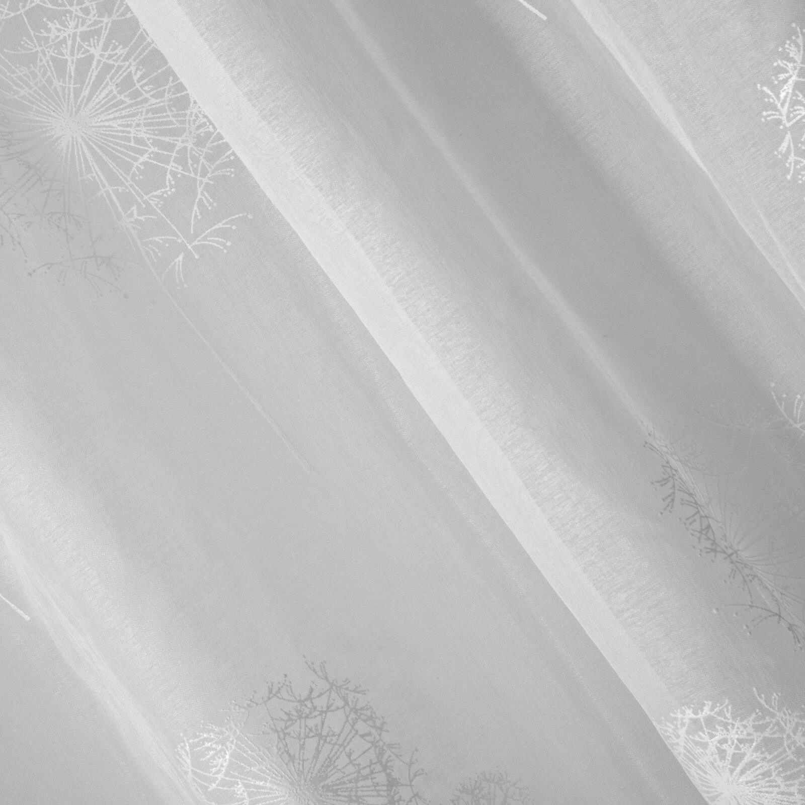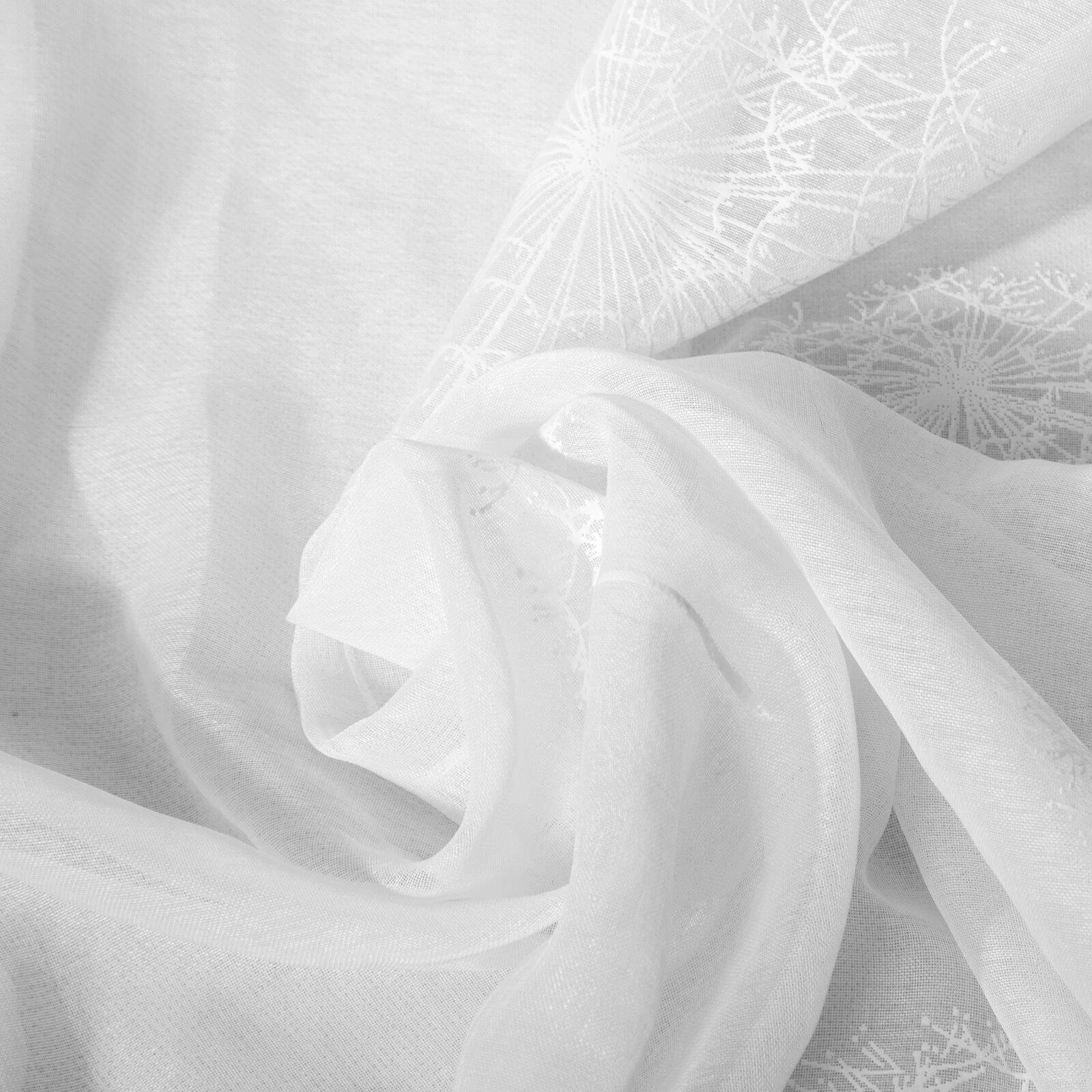 Firana gotowa zdobiona gumowanym nadrukiem szerokość: 140 cm, długość: 250 cm, kolor: biały, Gramatura: 75 GSM, Skład: 100% poliester