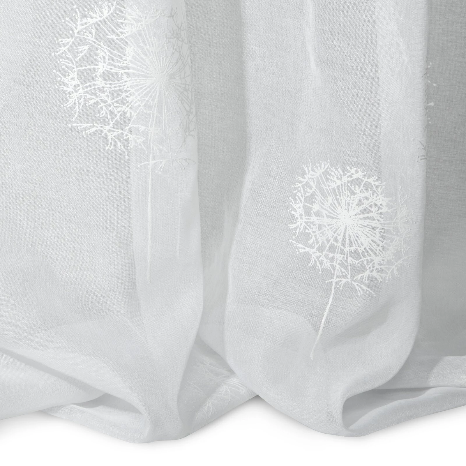- Firana gotowa zdobiona gumowanym nadrukiem szerokość: 140 cm, długość: 250 cm, kolor: biały, Gramatura: 75 GSM, Skład: 100% poliester