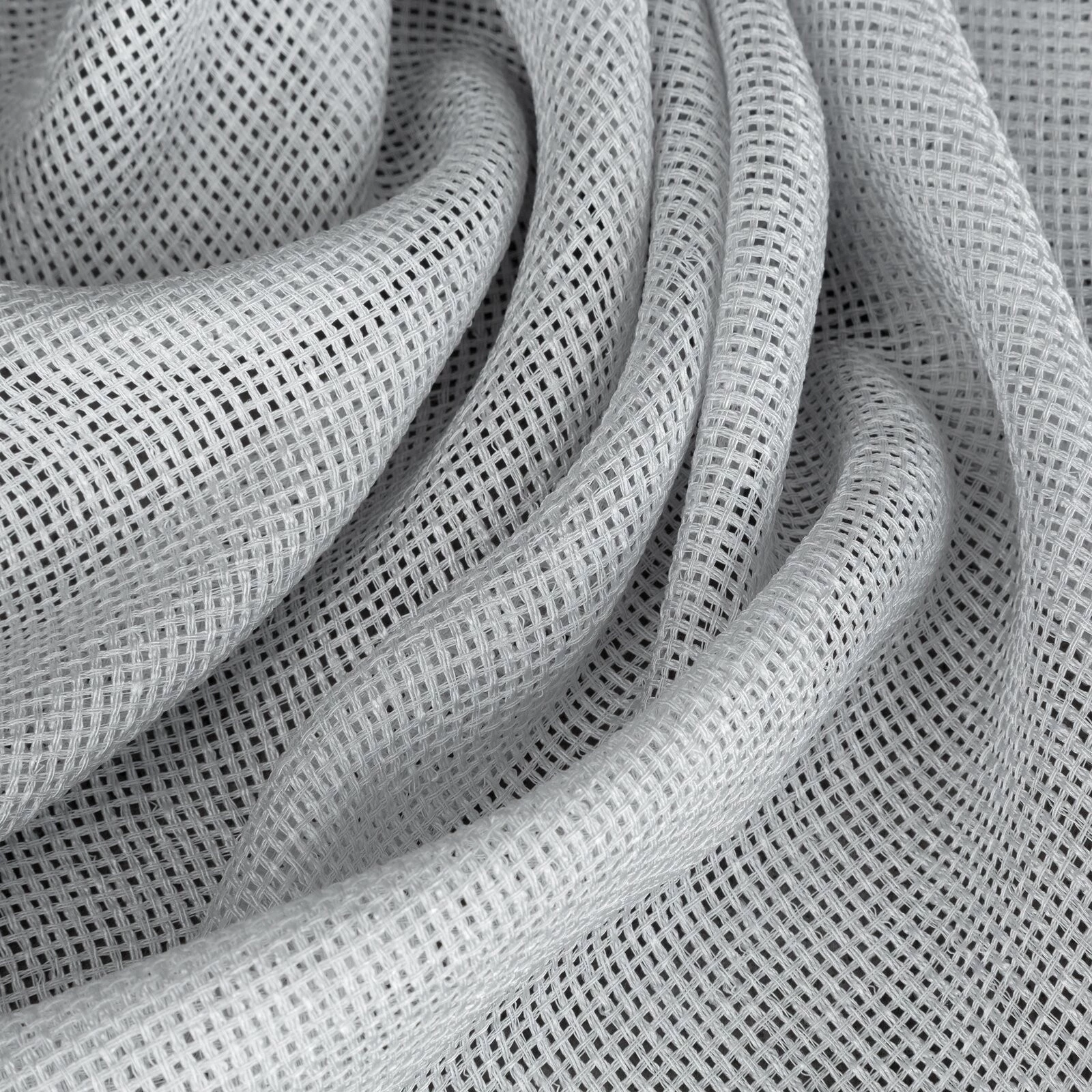 Firana gotowa o strukturze siatki szerokość: 140 cm, długość: 270 cm, kolor: srebrny, Gramatura: 140 GSM, Skład: 100% poliester