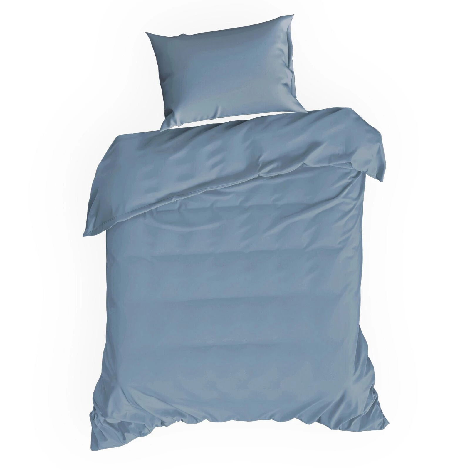 Gładka i lekka pościel z wysokiej jakości tkaniny bawełnianej. Przyjemna w dotyku bielizna pościelowa zapinana na zamek błyskawiczny jest odporna na pranie. szerokość: 160 cm, długość: 200 cm, kolor: niebieski, Gramatura: 125 GSM, Skład: satyna, 100% bawełna