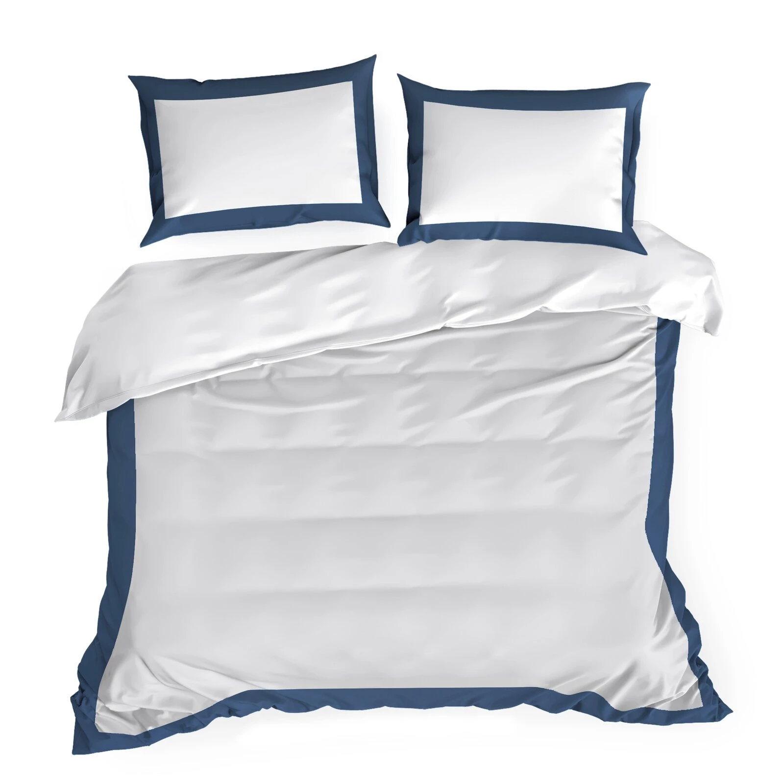 Pościel satynowa z bawełną z ozdobną kantą w kontrastowym odcieniu szerokość: 220 cm, długość: 200 cm, kolor: biały, Gramatura: 125 GSM, Skład: 55% bawełna, 45% poliester