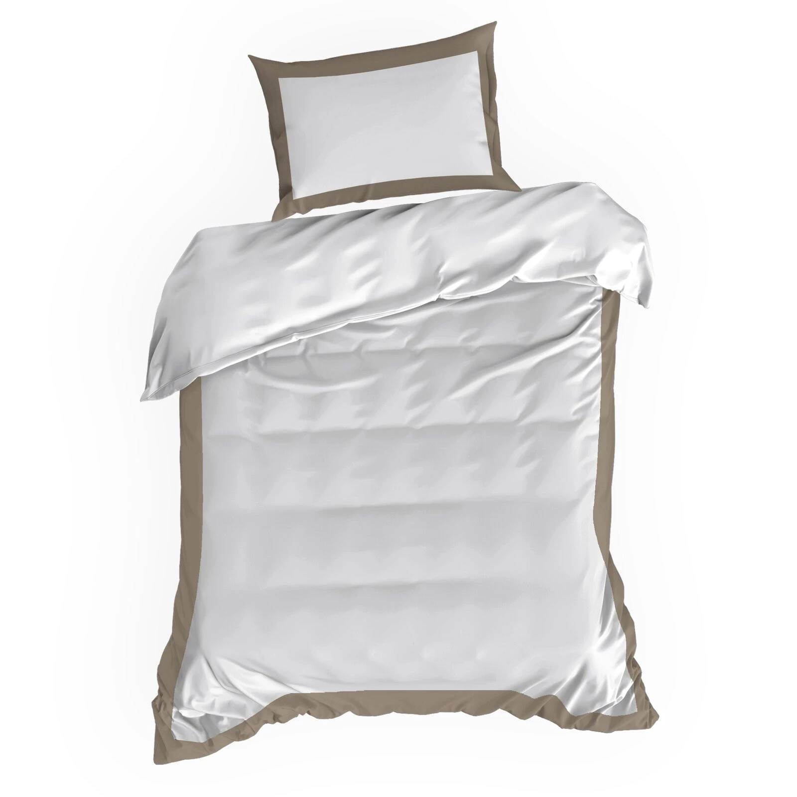 Pościel satynowa z bawełną z ozdobną kantą w kontrastowym odcieniu szerokość: 160 cm, długość: 200 cm, kolor: biały, Gramatura: 125 GSM, Skład: 55% bawełna, 45% poliester